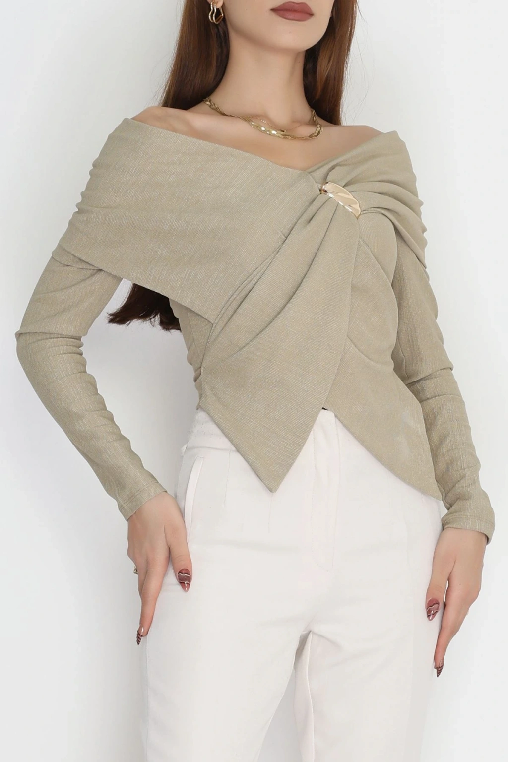 Elegant Kumaş Toka Detay Bluz Çağla - 70872.1918.
