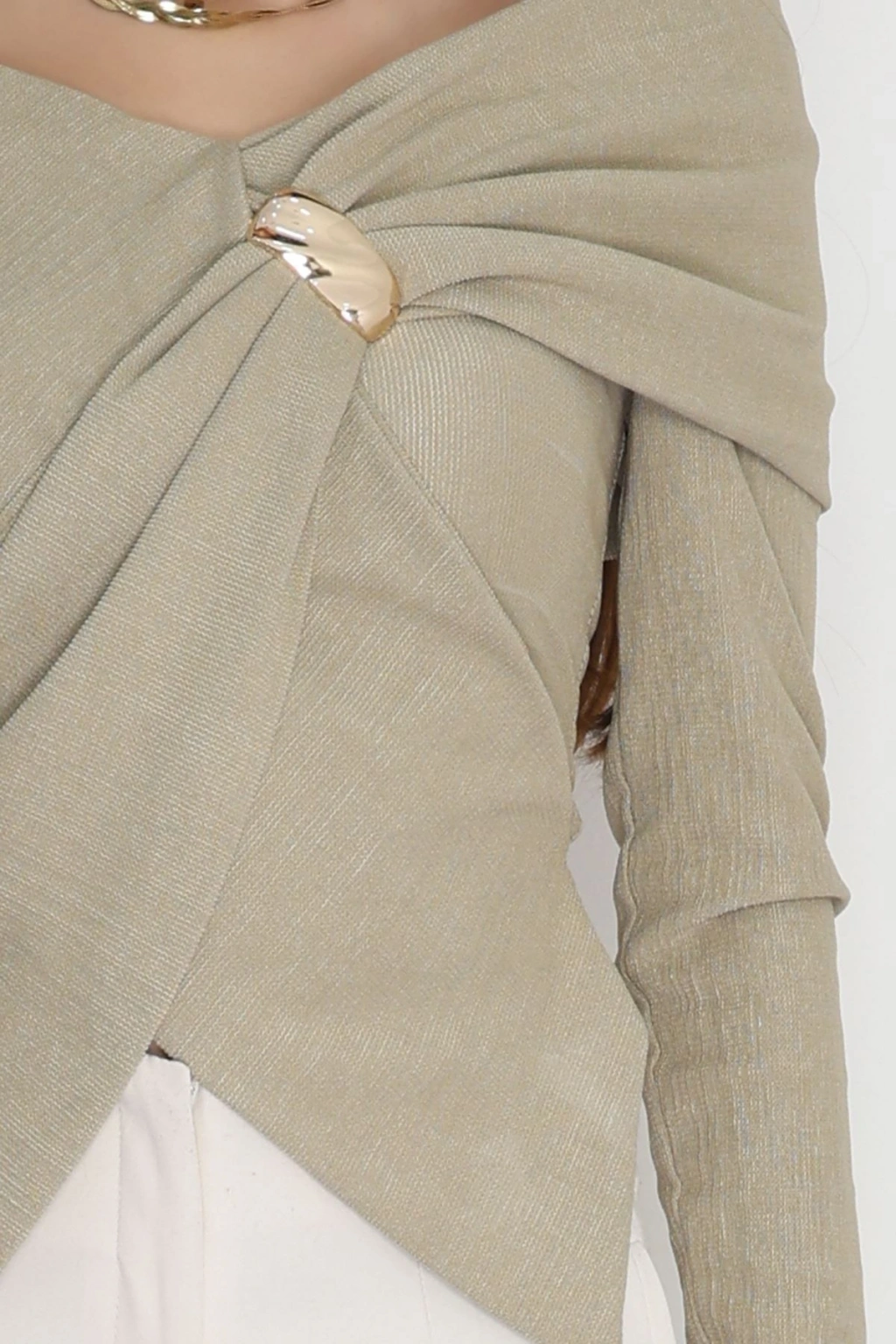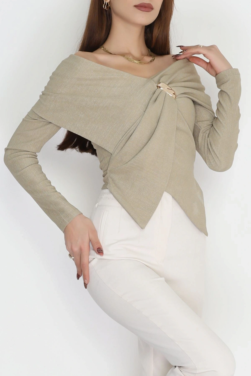 Elegant Kumaş Toka Detay Bluz Kahve - 70872.1918.