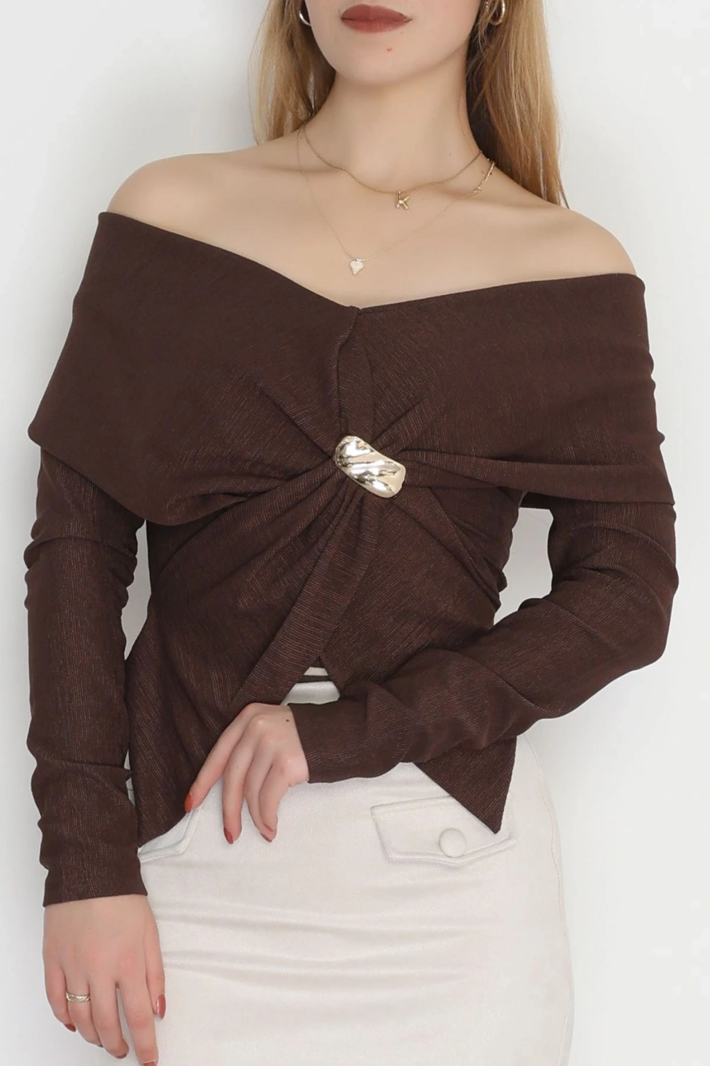 Elegant Kumaş Toka Detay Bluz Kahve - 70872.1918.