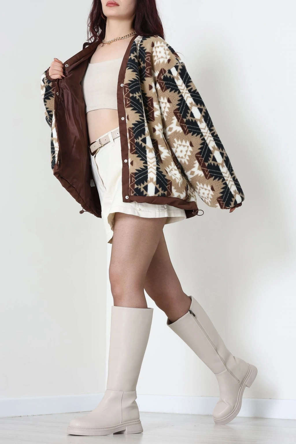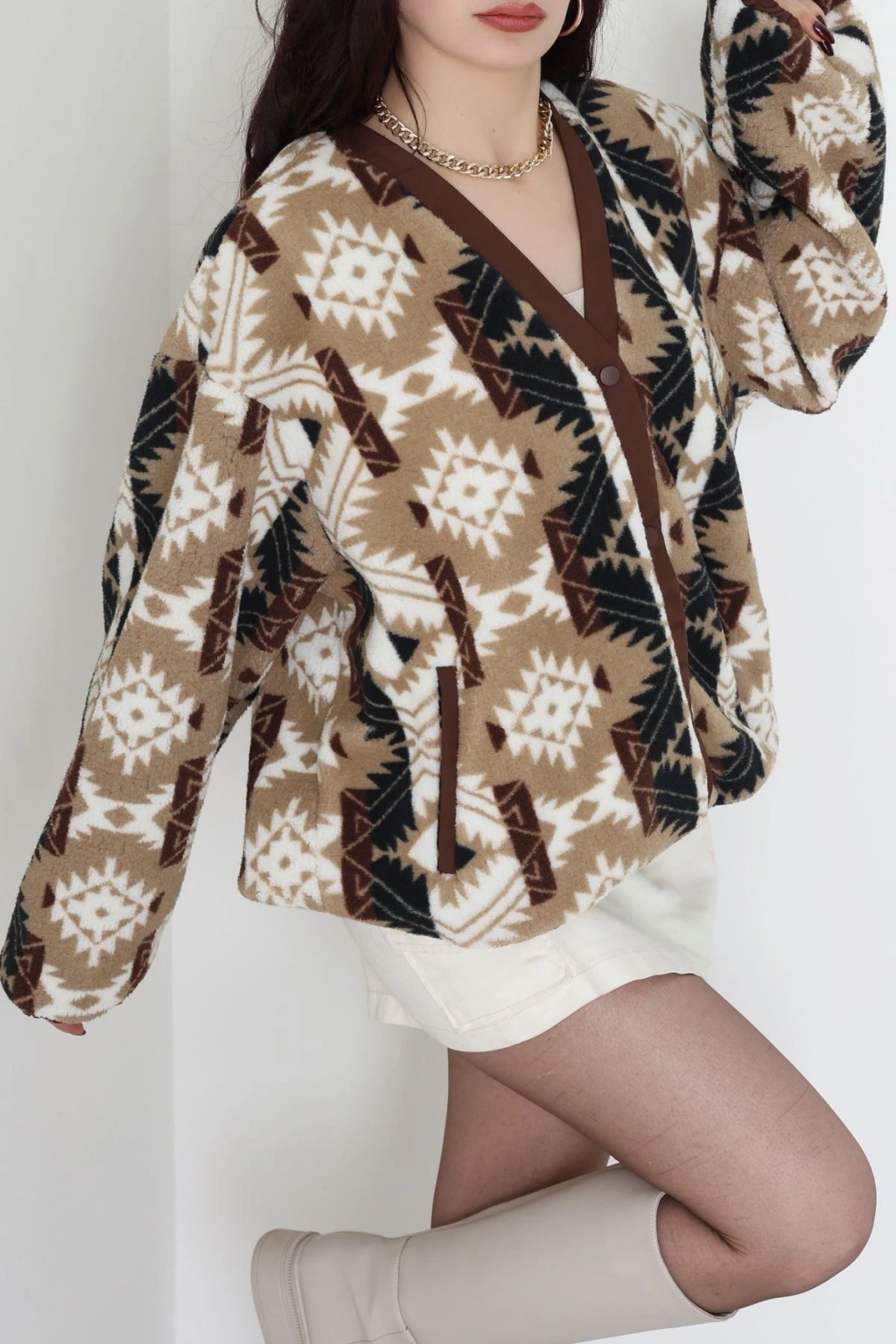 Etnik Desen Astarlı Mont Vizonkahve - 42903.1247.