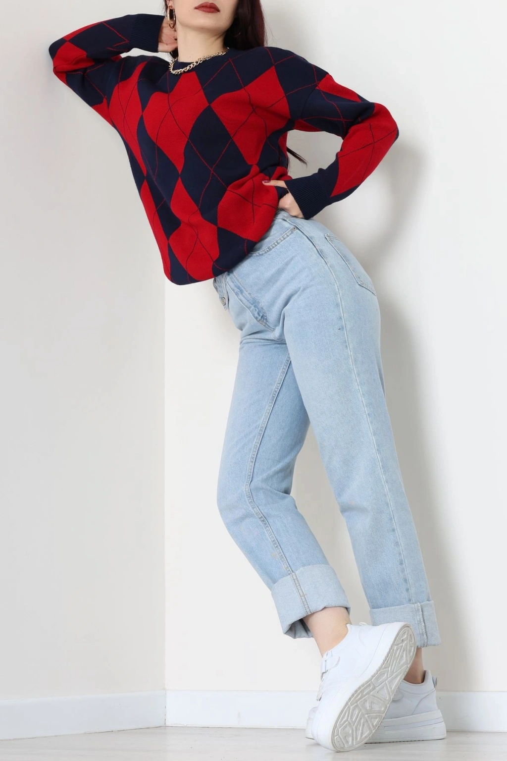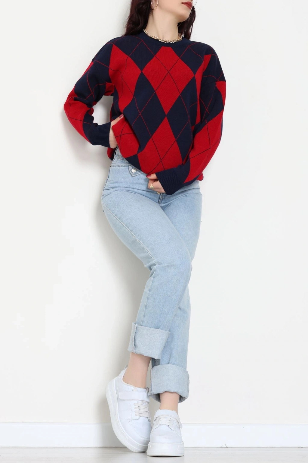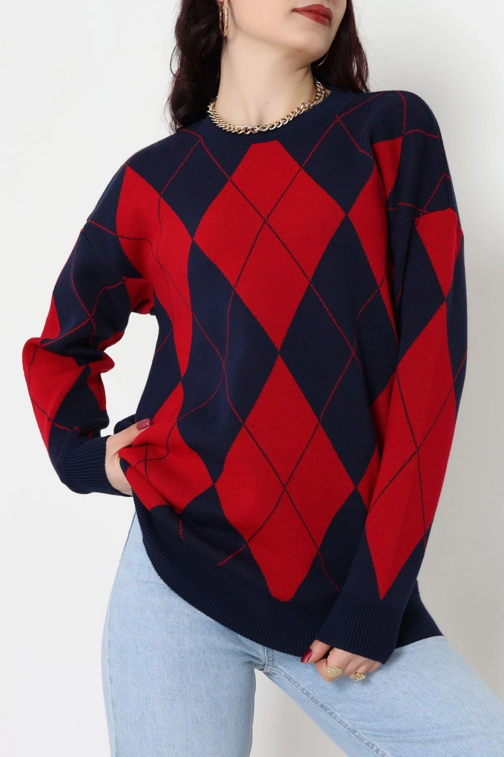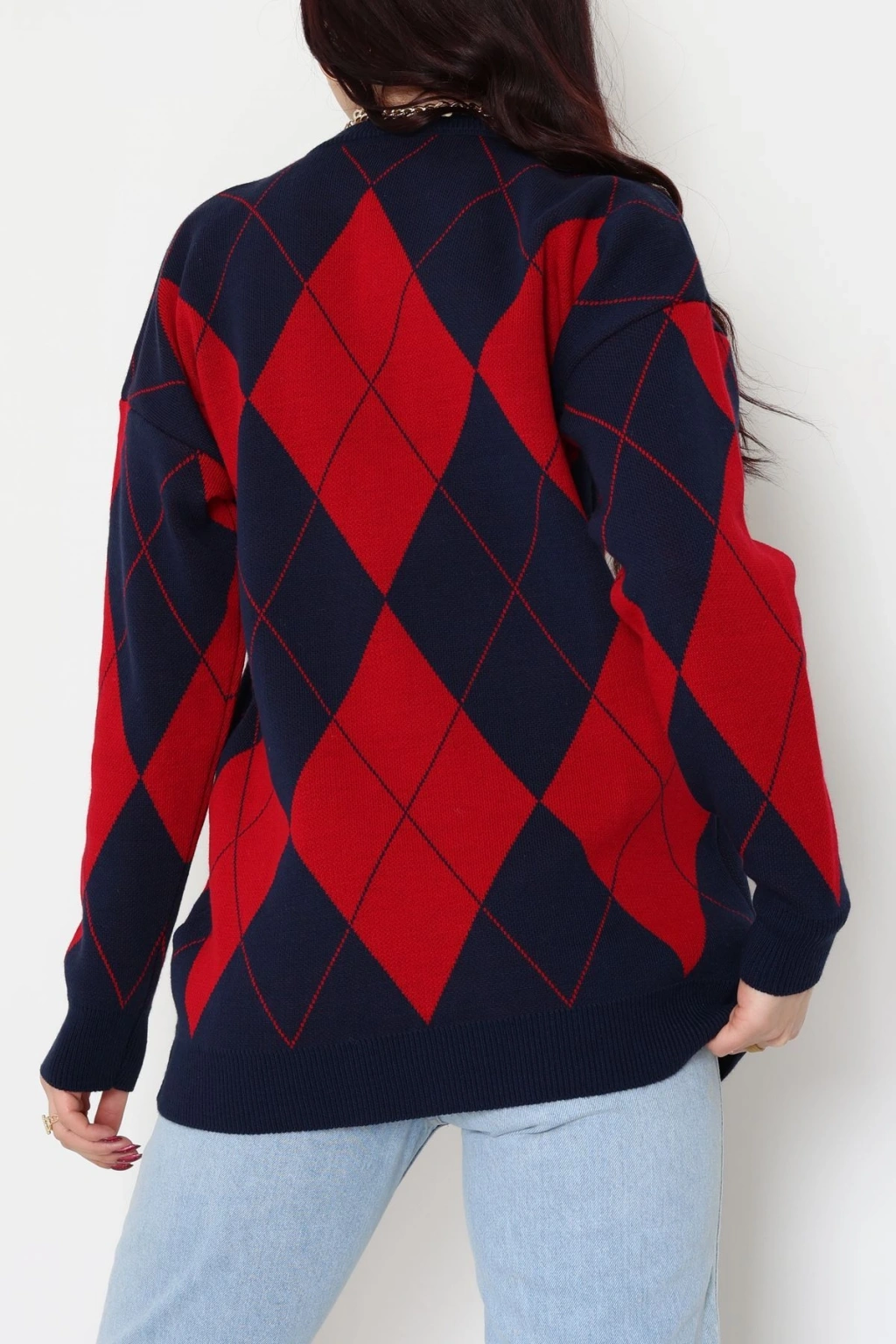 Etnik Desen Triko Lacivertkırmızı - 3027.1577.