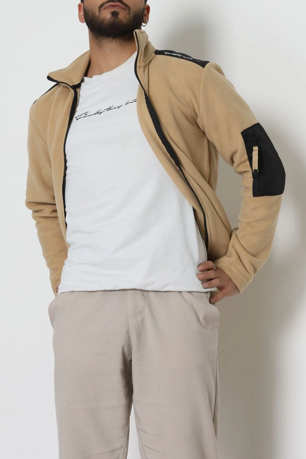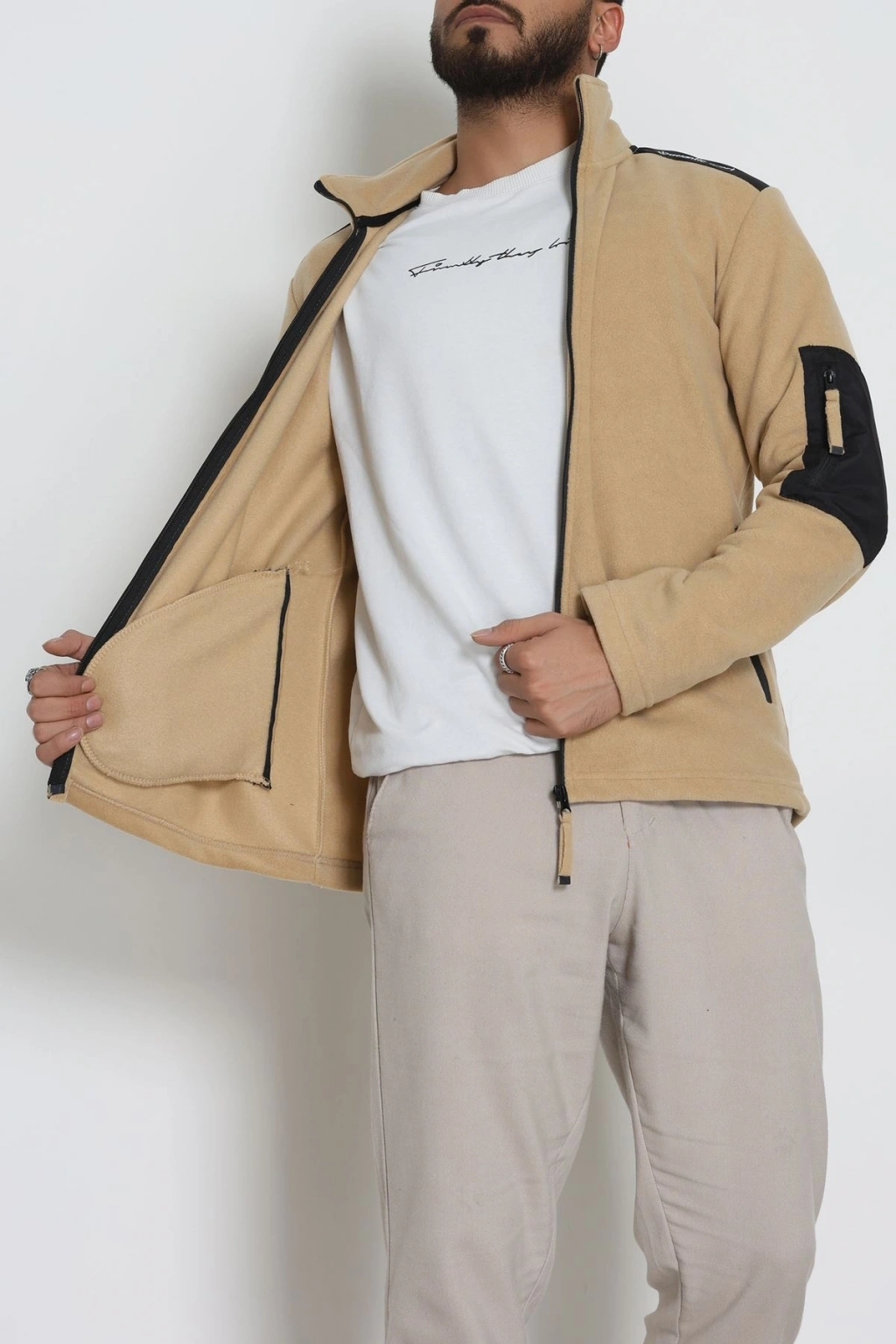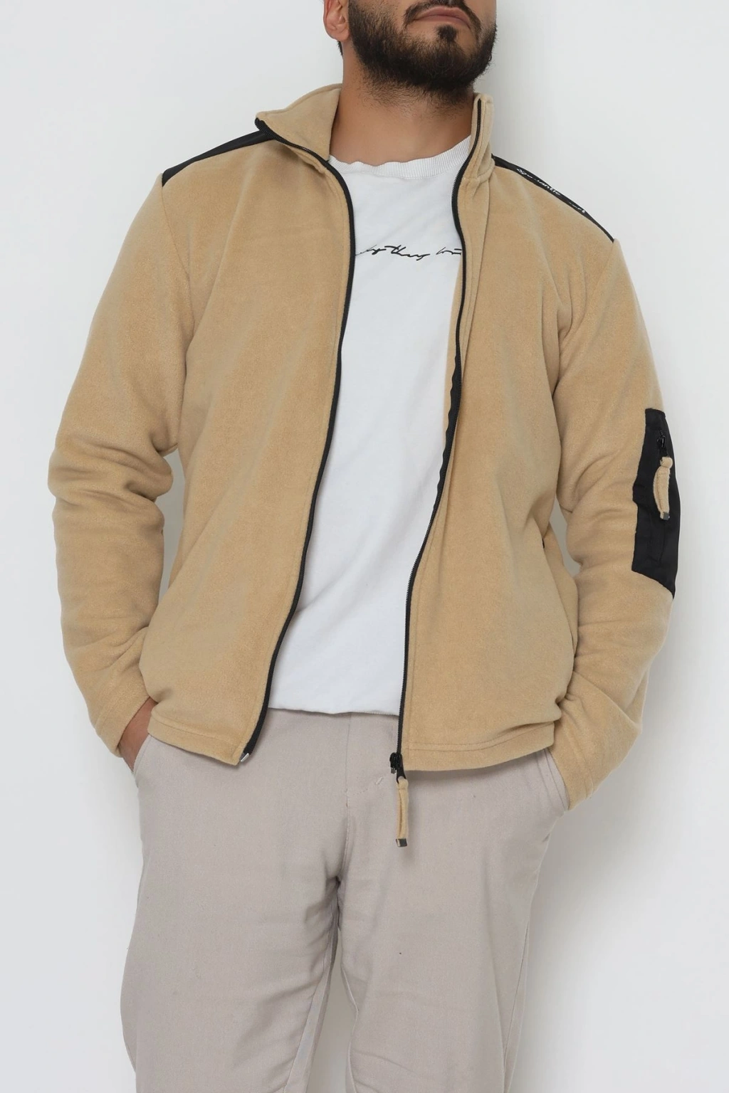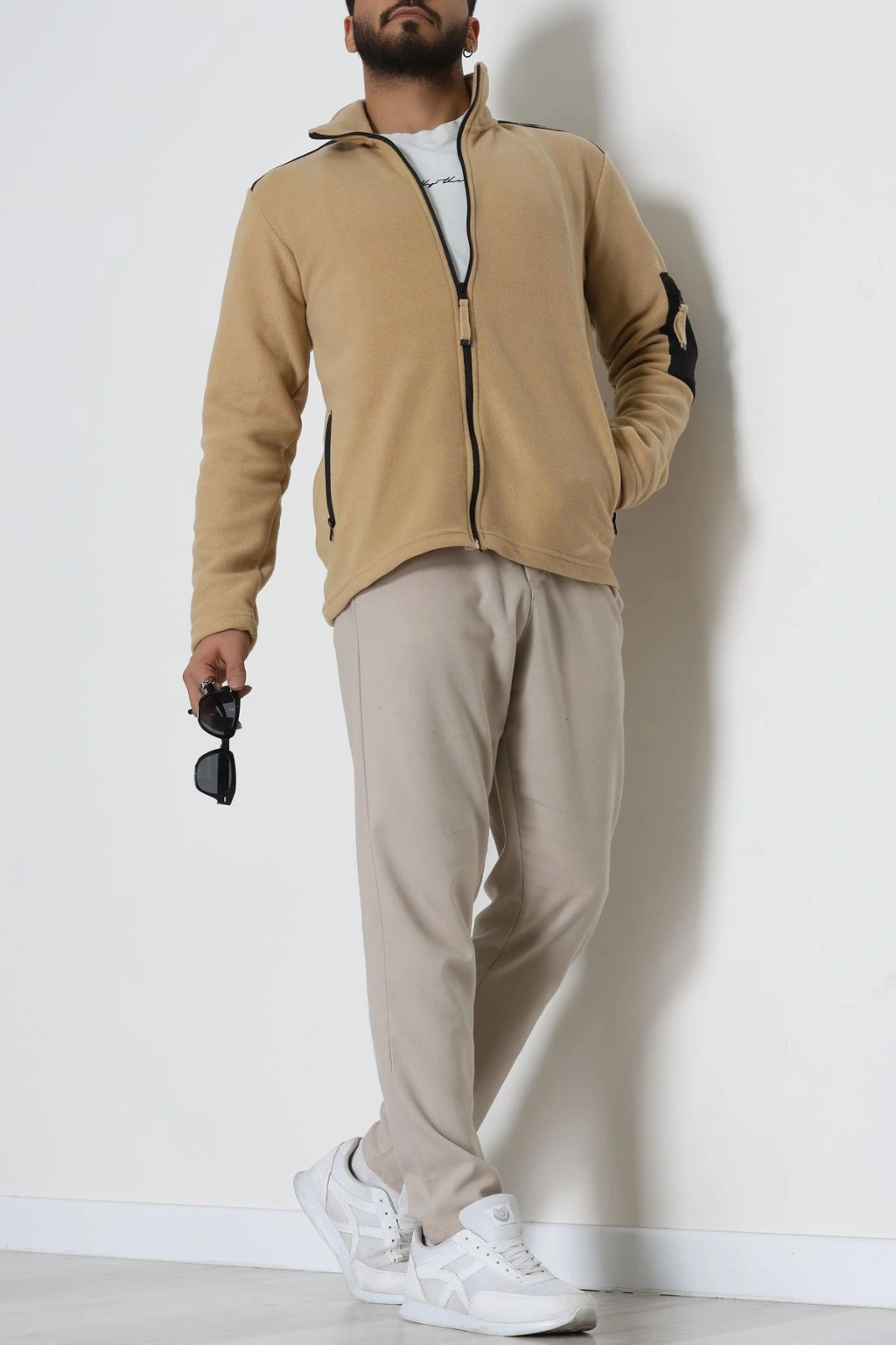 Fermuar Detaylı Erkek Polar Sweat Camel - 42820.1937.