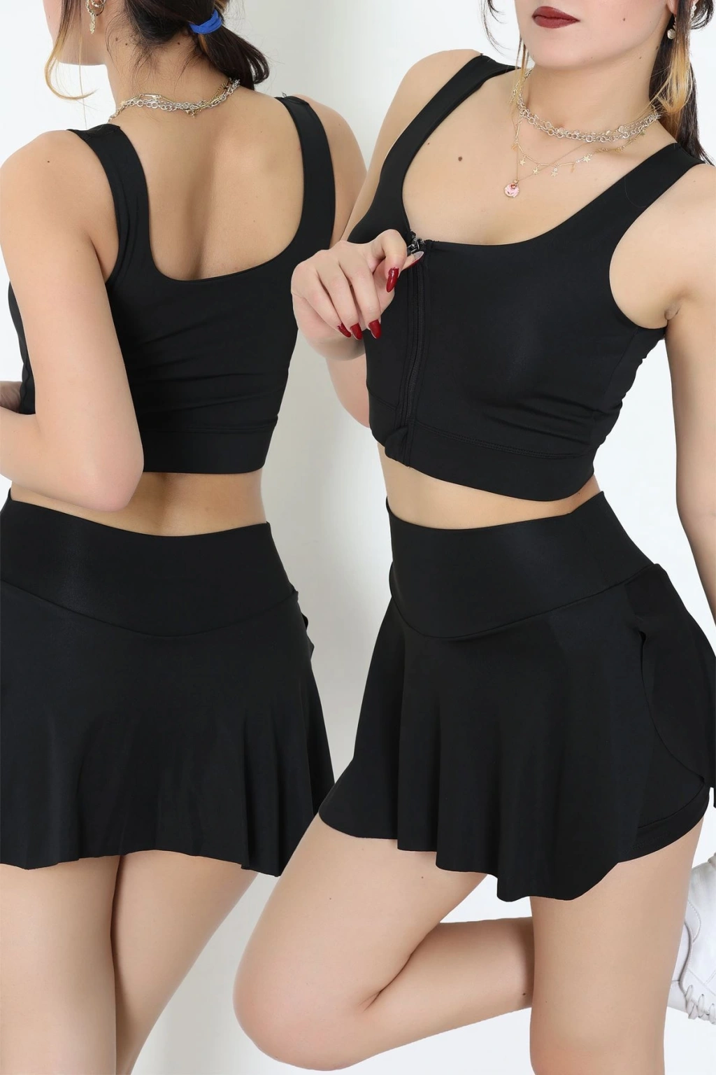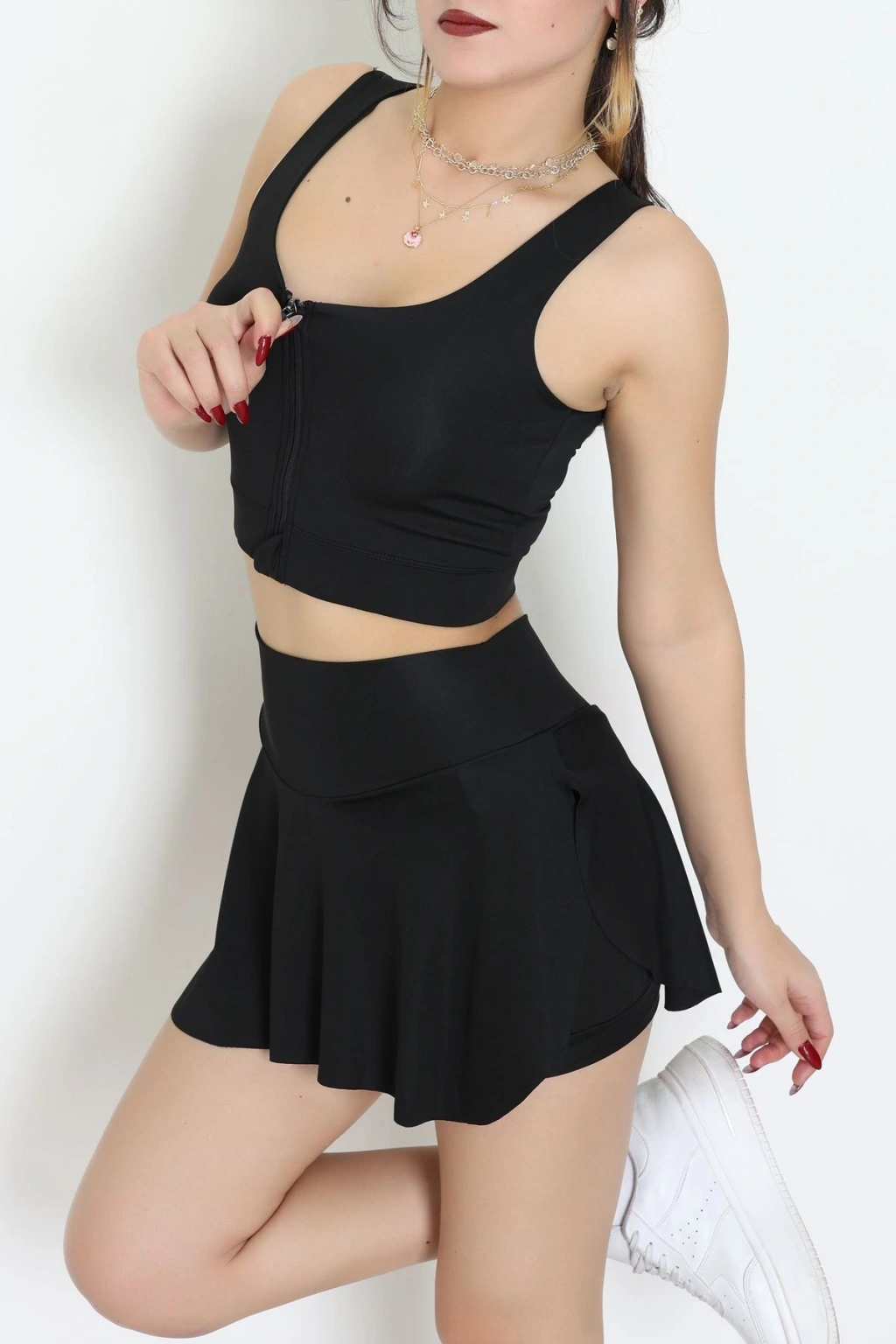Biyeli Kalın Askılı Crop Atlet Siyah - 9032.125.