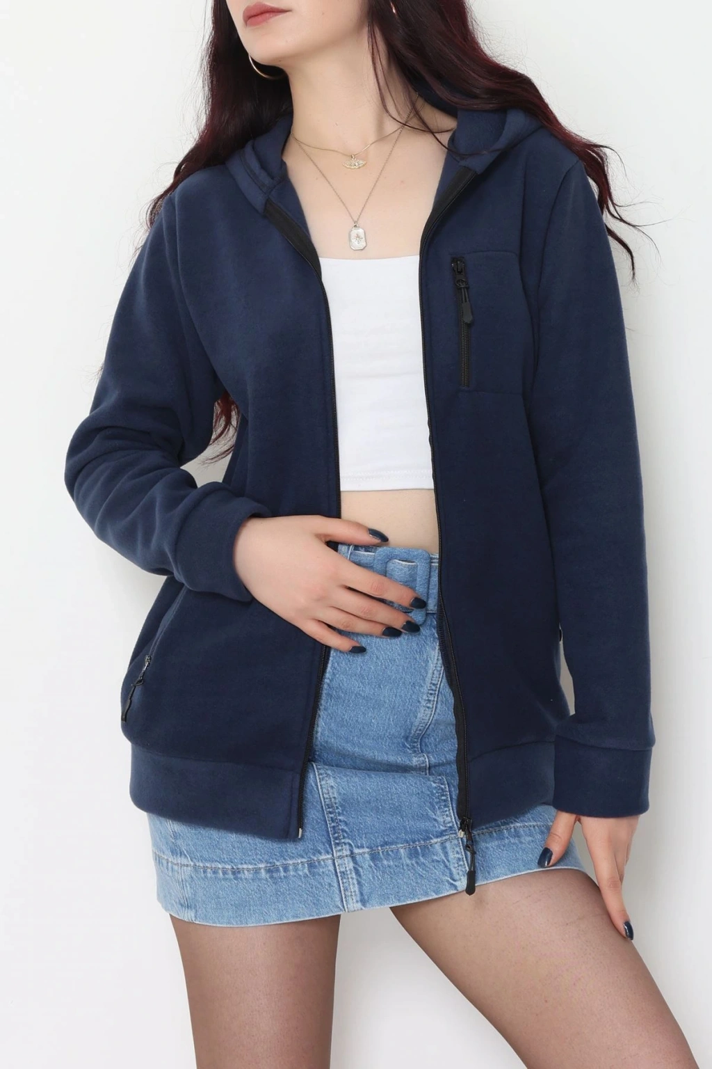 Fermuarlı Kapşonlu Polar Ceket Lacivert - 52114.053.