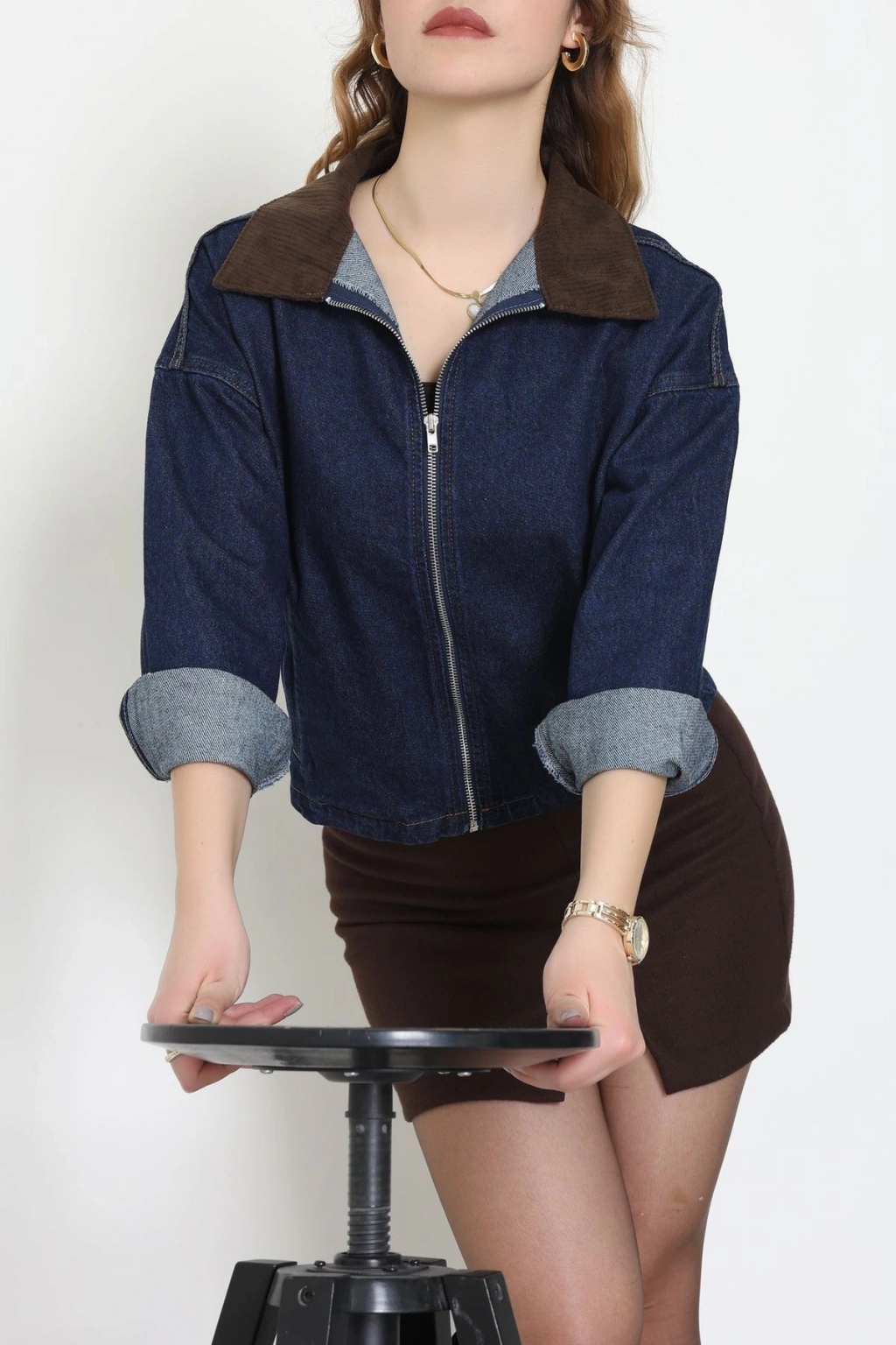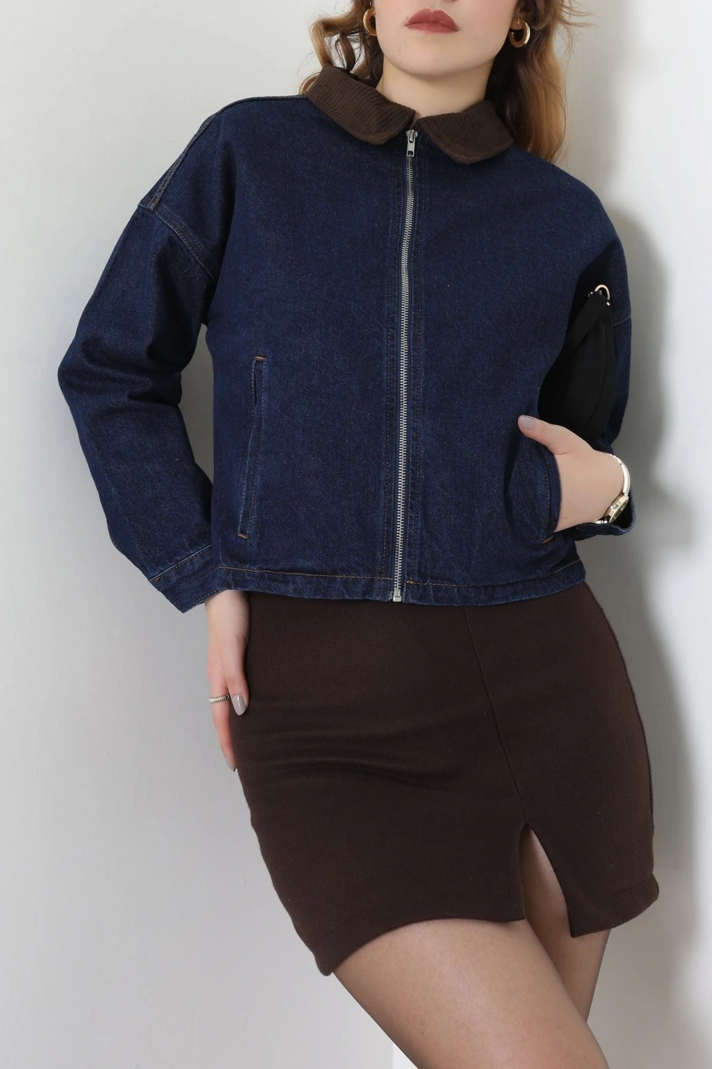 Fermuarlı Kot Ceket Lacivert - 1010.2059.