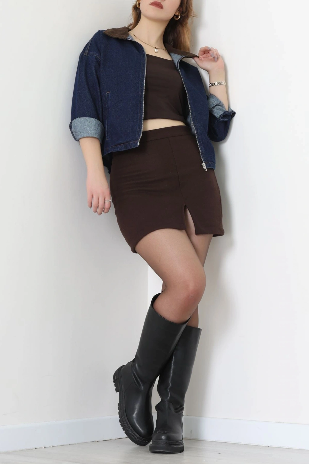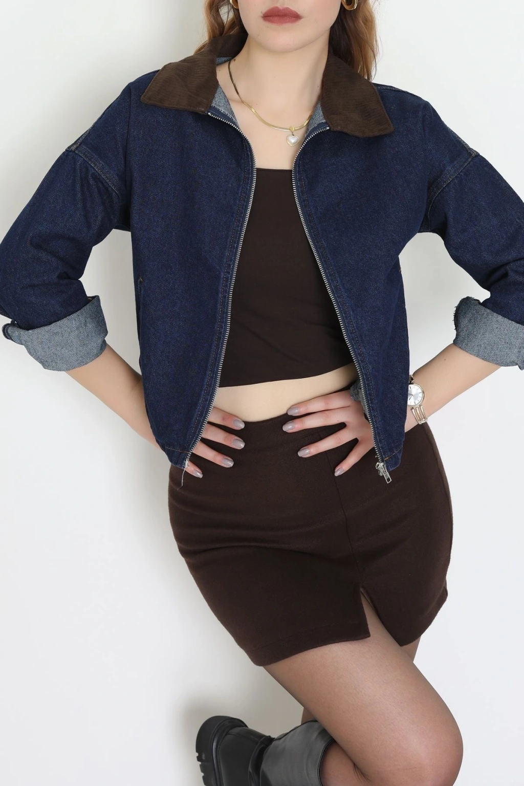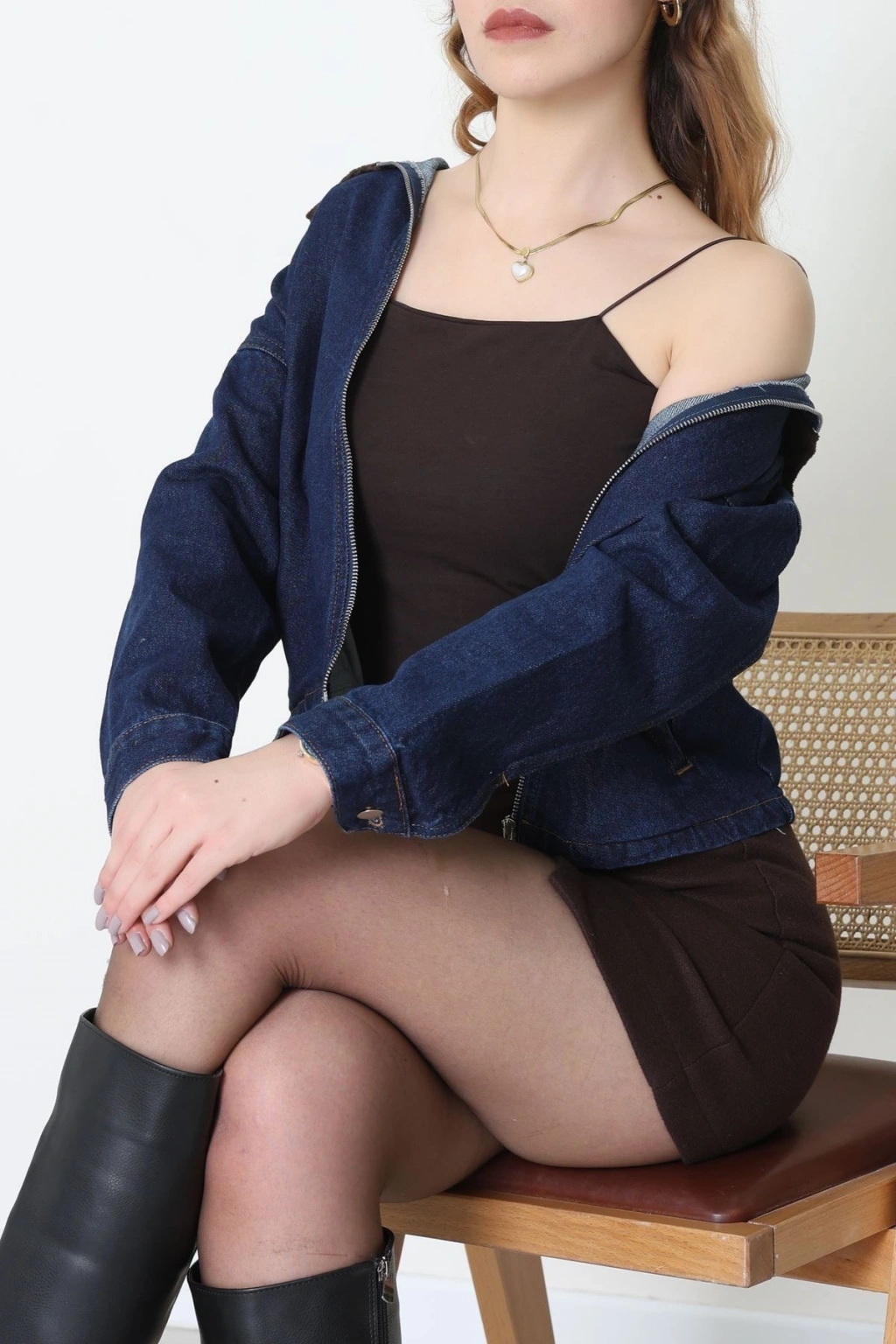 Fermuarlı Kot Ceket Karyıkama - 1010.2059.
