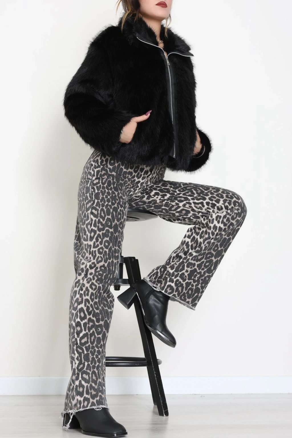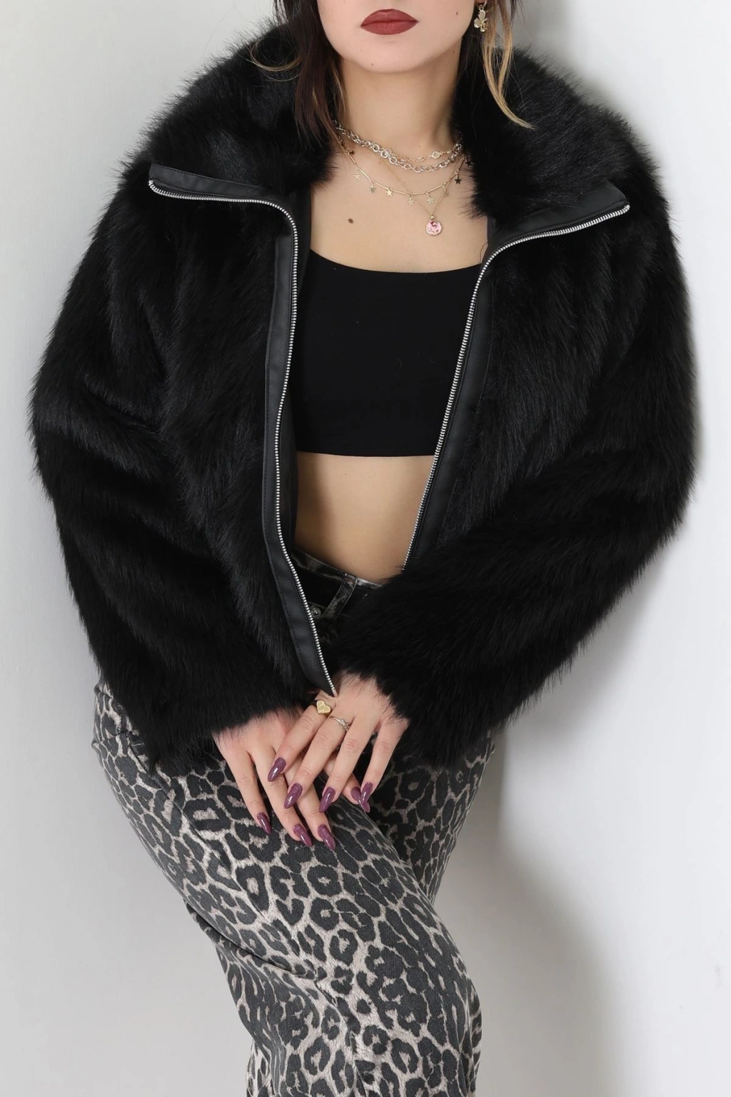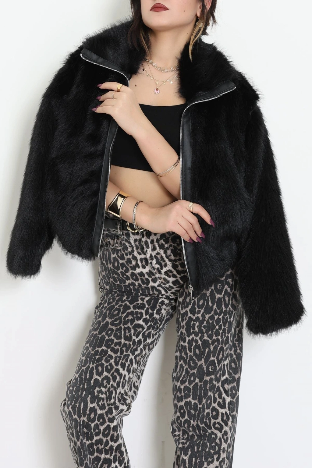 Fermuarlı Kürklü Ceket Siyah - 8780.179.