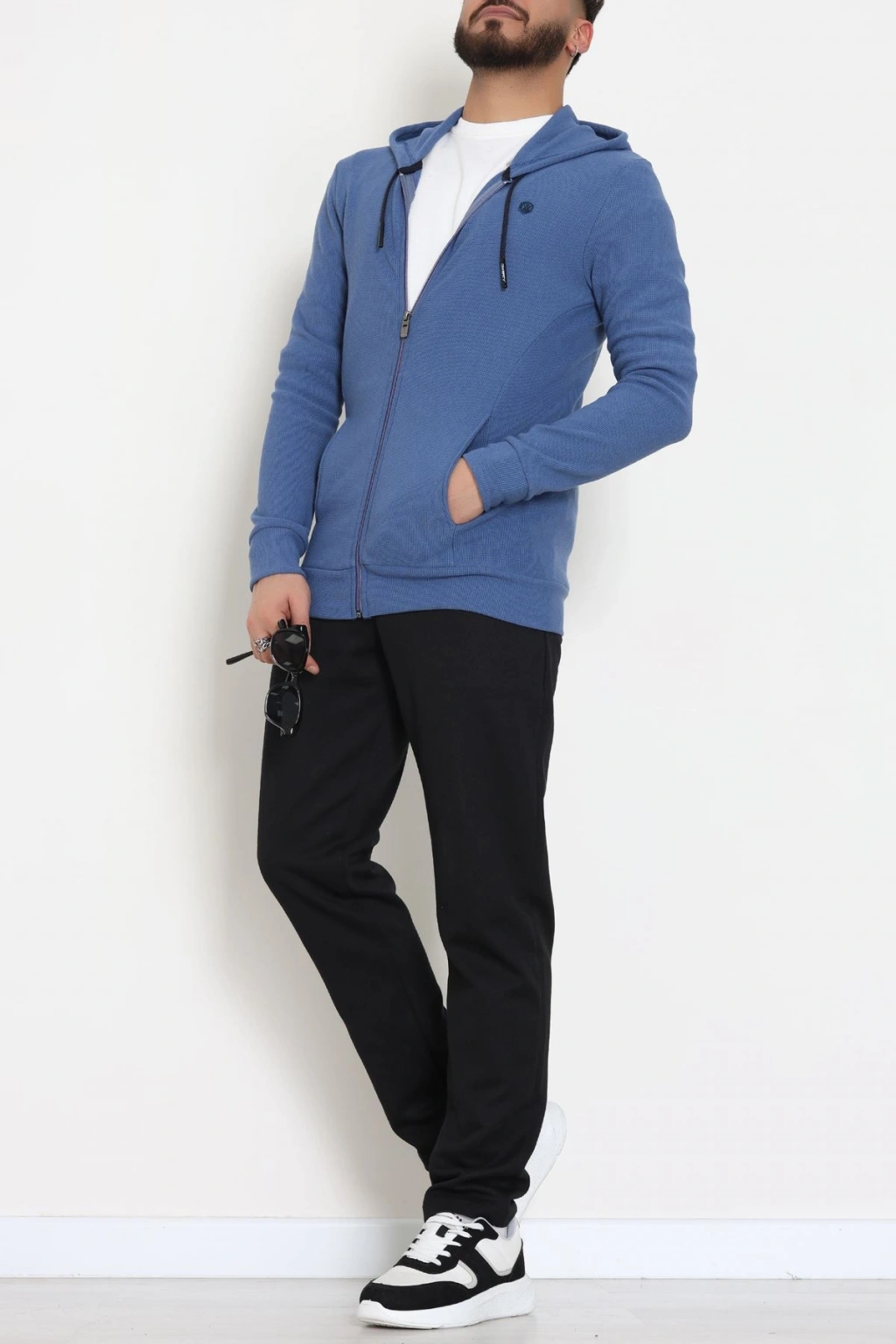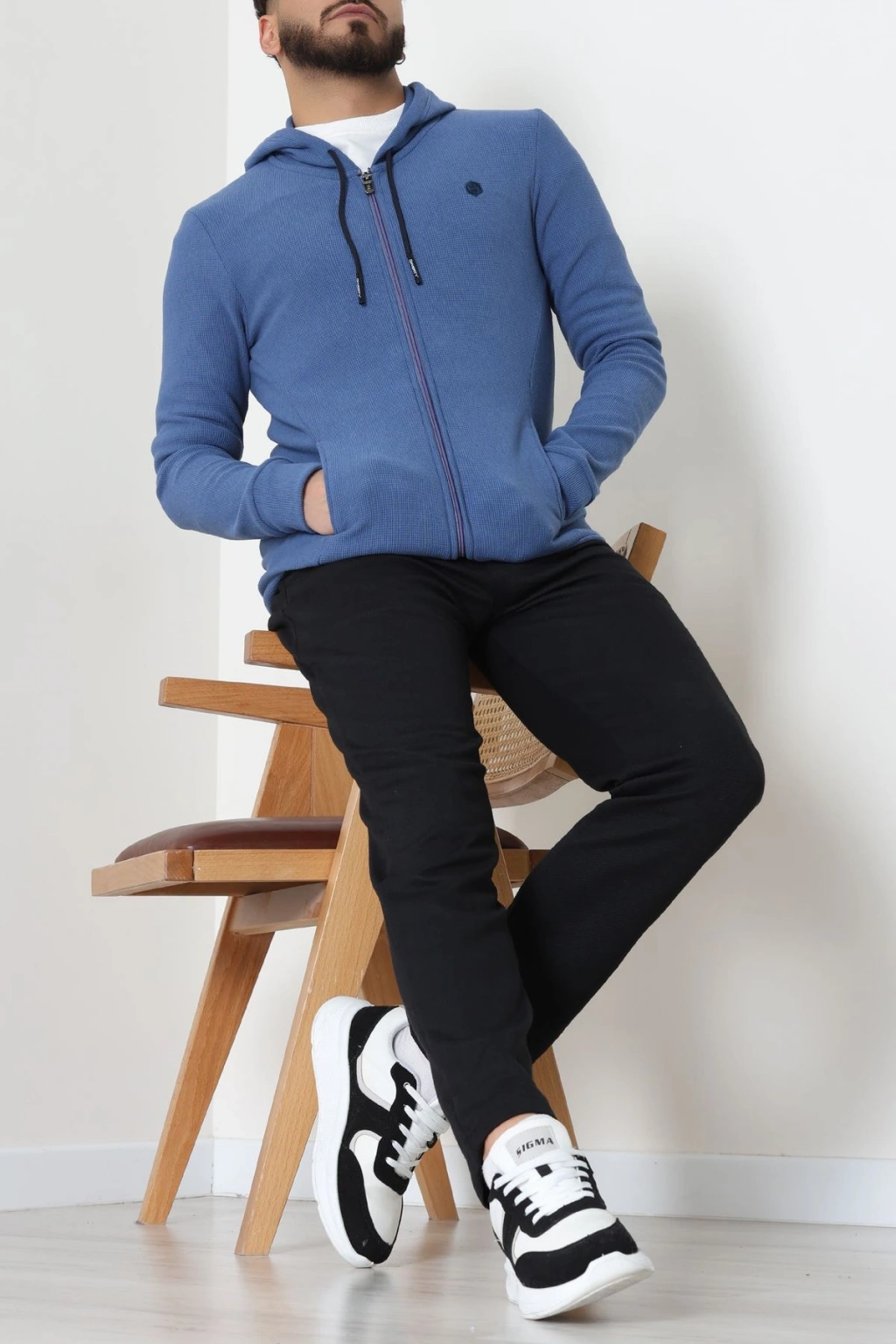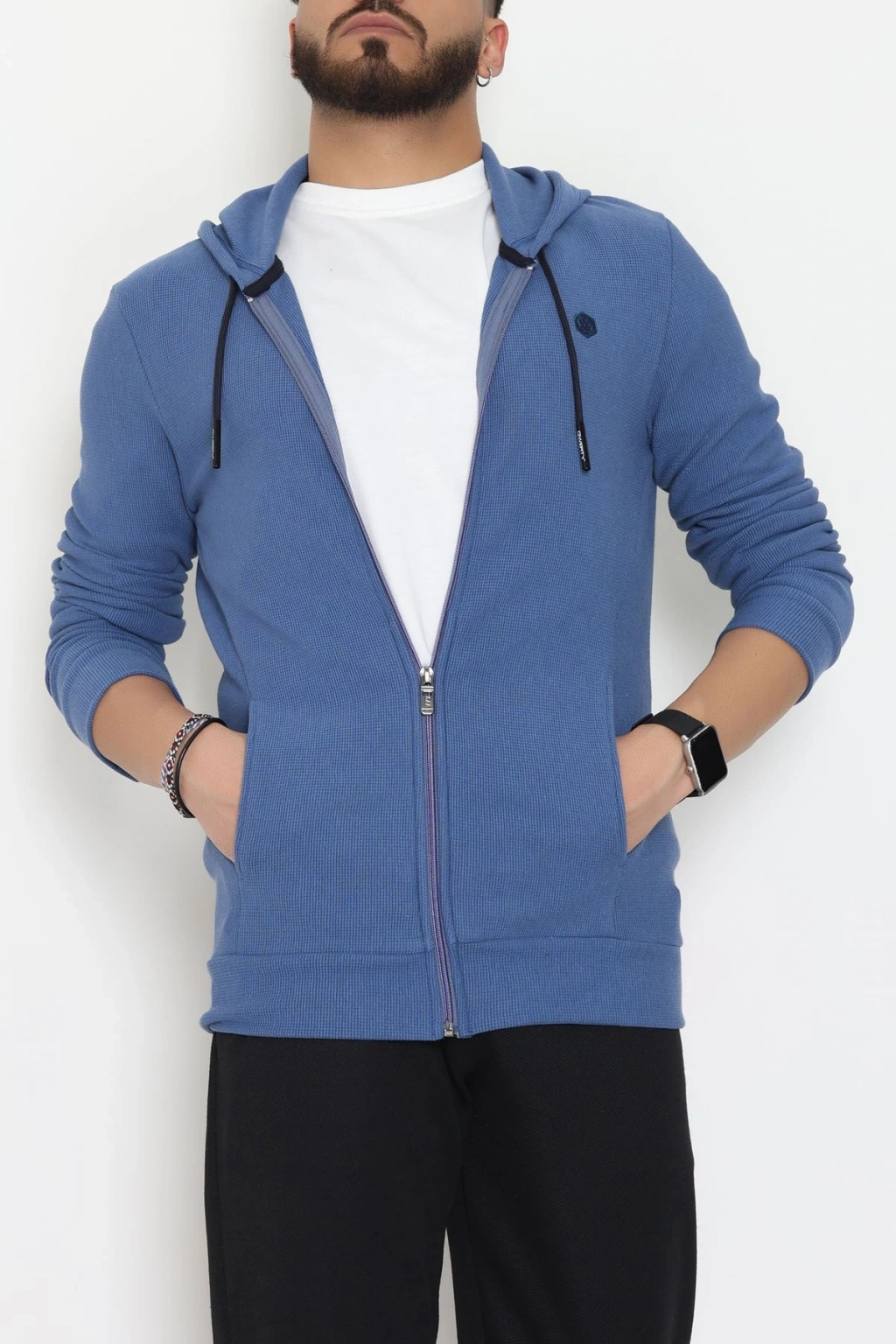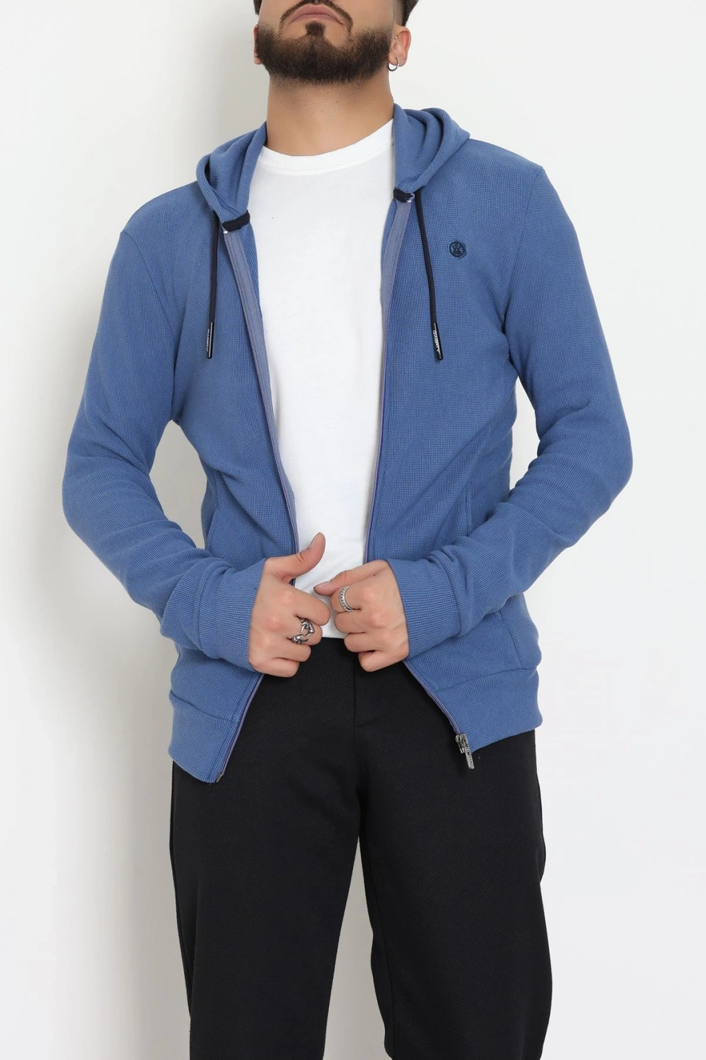 Fermuarlı Yan Kup Kapşonlu Erkek Sweat İndigo - 25972.2125.