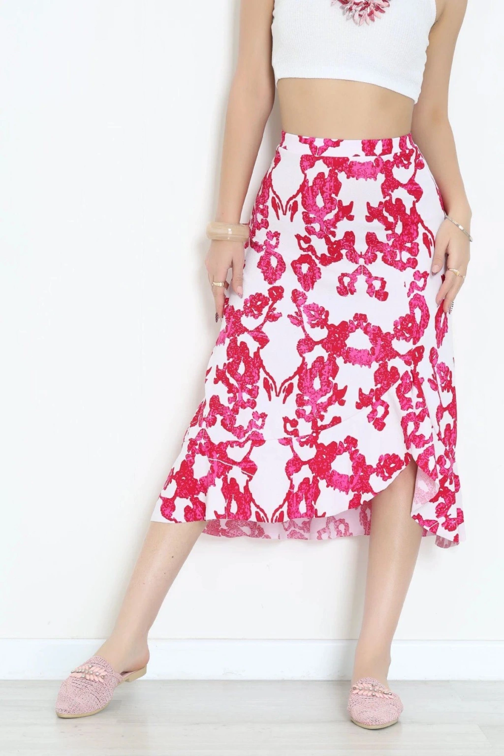 # Fuşya Fırfırlı Krep Etek ## Tasarım ve Konfor Özellikleri Canlı fuşya rengiyle dikkat çeken **fırfırlı etek** modelimiz, krep dokusuyla terletmeyen ve oldukça hafif bir kullanım deneyimi sunuyor. Esnek yapısı sayesinde gün boyu kısıtlanmadan hareket etme özgürlüğü sağlayan bu parça, bel kısmındaki rahat kesimiyle vücut hatlarını zarifçe takip ediyor. Tasarımın alt kısmında yer alan dinamik katmanlar, yürüyüş esnasında akışkan bir görünüm oluşturarak stilinize doğal bir canlılık katıyor. **Normal bel etek** formuyla tasarlanan bu fırfırlı etek, likralı yapısı ile farklı vücut tiplerine konforlu bir şekilde eşlik ediyor. Yumuşak dokulu krep kumaşı, fuşya tonunun enerjisini uzun süre koruyarak solma yapmadan dayanıklı bir kullanım imkanı sunar. Eteğin ön kısmındaki asimetrik fırfır detayları, dikey hatları vurgularken diz altı boy hizasıyla silueti daha dengeli gösteriyor. Kaliteli dikiş işçiliği ve esnek lifleri sayesinde formunu kaybetmeyen bu tasarım **fuşya krep etek** arayanlar için ideal bir dokuya sahiptir. Modern kesimiyle ön plana çıkan **esnek kumaş etek** tasarımı, bütçe dostu ve uzun ömürlü bir ekonomik seçenektir. Hemen sepete ekleyin.