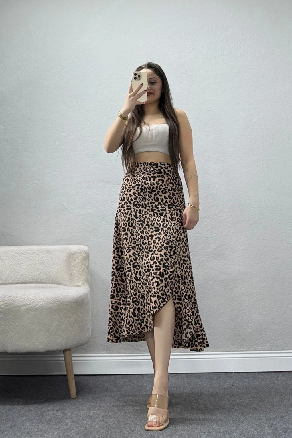 # Leopar Desenli Yırtmaçlı Etek ## Şık Kesim ve Modern Detaylar Bu şık **leopar desenli etek**, modern yırtmaç detayı ve dökümlü kumaşıyla feminen bir silüet oluştururken gün boyu konfor sunar. Yüksek bel kesimi sayesinde vücut hatlarını zarifçe vurgulayan modelimiz, fırfırlı ucuyla hareketli bir görünüm kazanır. Hareket özgürlüğü sağlayan derin yan yırtmacı, tasarıma iddialı bir dokunuş ekleyerek dikkatleri üzerine çeker. **Leopar desenli etek arayanlar için** bu tasarım kaliteyi ve zarafeti doğrudan yansıtır. Bel hattından aşağıya doğru hafifçe genişleyen kesim, alt kısımdaki fırfırlarla birleşerek dinamik bir yapı sunar. Modelin yumuşak kumaş dokusu teninizde hassas bir his bırakırken, siyah motifler sofistike bir duruş sergiler. Yan kısımdaki **yırtmaçlı etek** detayı yürüyüş sırasında estetik bir akış oluşturarak kullanım konforunu artırır. Şıklığı ve rahatlığı bir arada sunan bu parça, avantajlı fiyatıyla dikkat çeken ekonomik seçenekler arasındadır. Satın almak için sepete ekleyin.