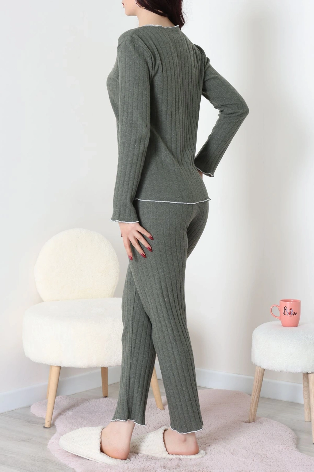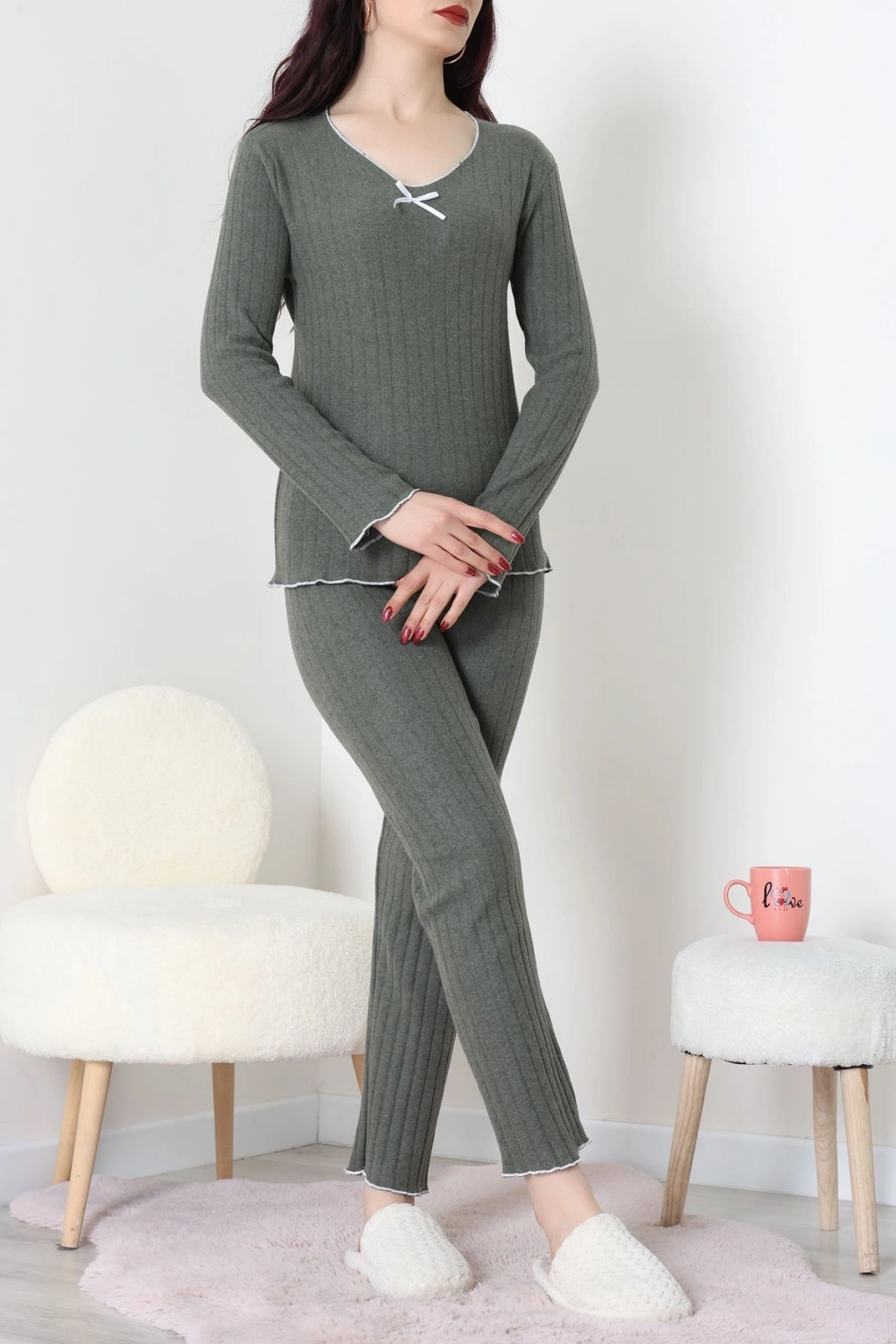 Ring Viskon Düğmeli Pijama Takımı Haki - 52201.1961.