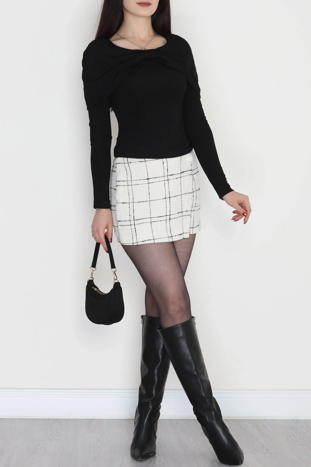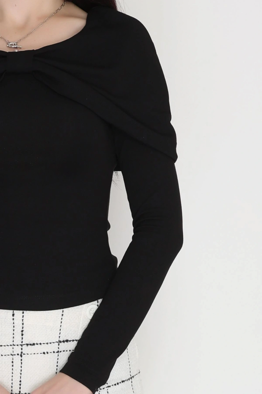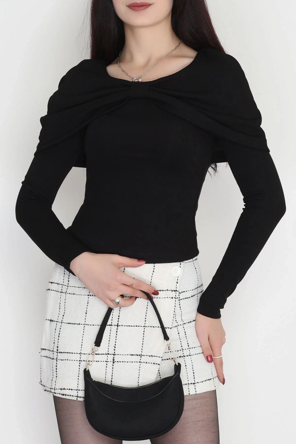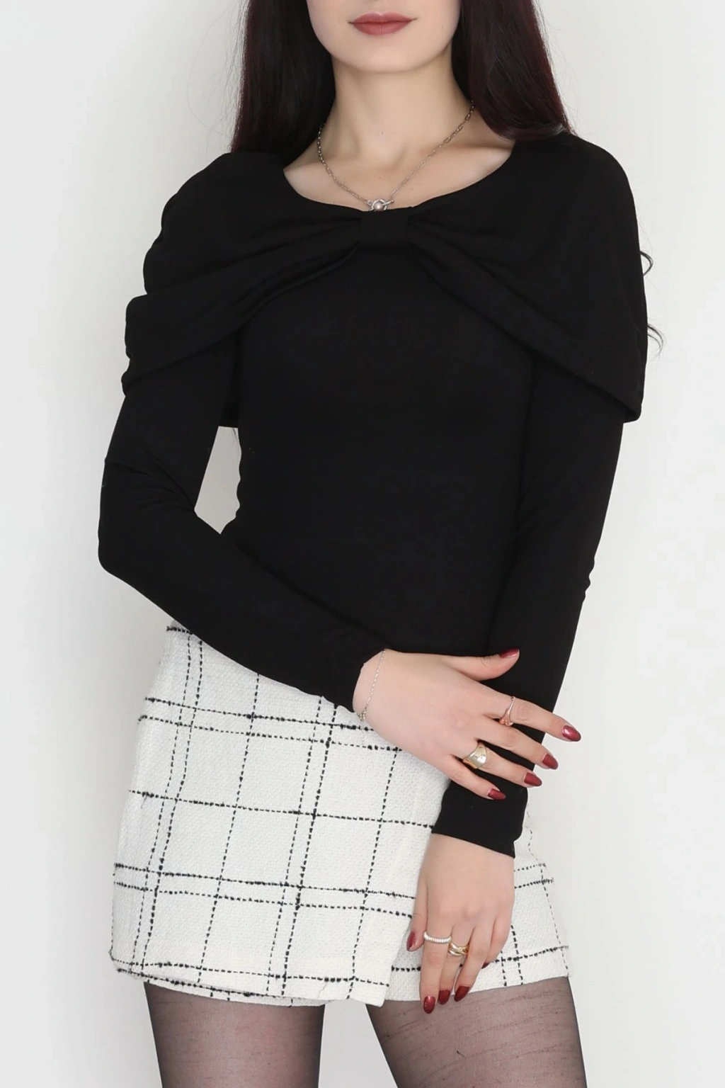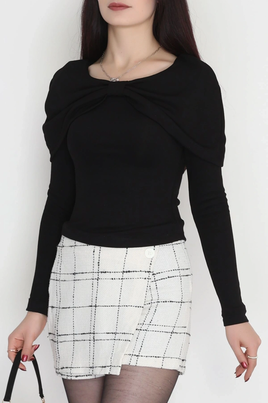 Fitilli Modal Kumaş Fiyonk Detay Bluz Siyah - 70871.1918.