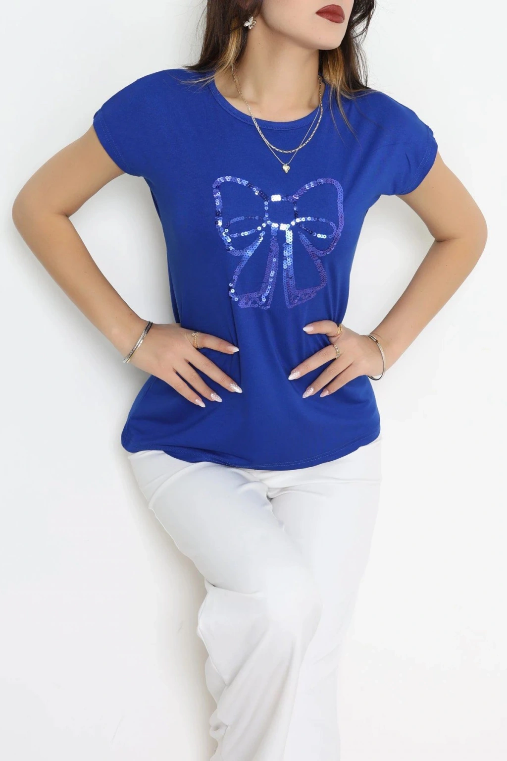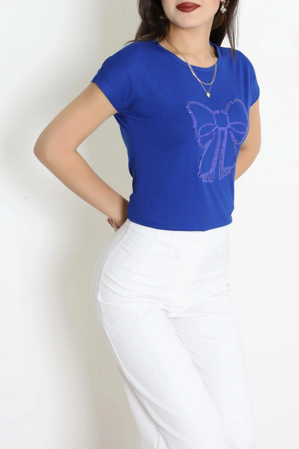 # Saks Mavisi Fiyonk Baskılı Bluz ## Konforlu Kesim ve Estetik Detaylar Saks mavisi rengin enerjisini yansıtan bu **fiyonk baskılı bluz**, gün boyu konfor sunan pamuklu kumaş dokusuyla öne çıkıyor. Modelimiz, cildinize nefes aldıran özel dokusu ve modern kesimi sayesinde her mevsim ferah bir kullanım deneyimi vadeder. Özellikle **saks mavisi bluz** tercihlerinde ön plana çıkan bu tasarım, göğüs kısmındaki estetik baskısıyla görsel bir derinlik kazanıyor. Kısa kollu yapısı ve dökümlü formuyla hareket özgürlüğünüzü kısıtlamadan üzerinizde oldukça hafif bir his bırakmayı amaçlar. Bu tasarımın ön panelinde yer alan ışıltılı fiyonk figürü, mat kumaş zeminine hareketli ve dikkat çekici bir hava kazandırır. Modelimizdeki bisiklet yaka formu ve omuz yapısı, vücut hattınıza doğal bir uyum sağlayarak özenli bir görünüm sergilemenize yardımcı olur. Kaliteli ipliklerden üretilen bu **kısa kollu bluz**, formunu ve canlı saks tonunu yıkama sonrasında bile başarıyla muhafaza eder. Şık ve **fiyonk baskılı bluz arayanlar için** hazırlanan bu parça, kalitesiyle öne çıkan ekonomik seçenektir. Satın almak için sepete ekleyin.