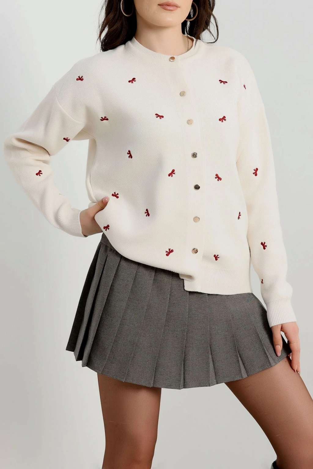 Fiyonk Detaylı Hırka Lattebordo - 3221.1577.