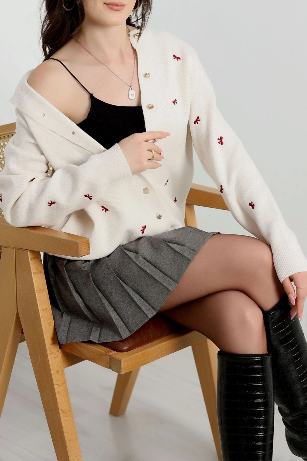 Nakışlı Hırka Siyahlatte - 490.1577.