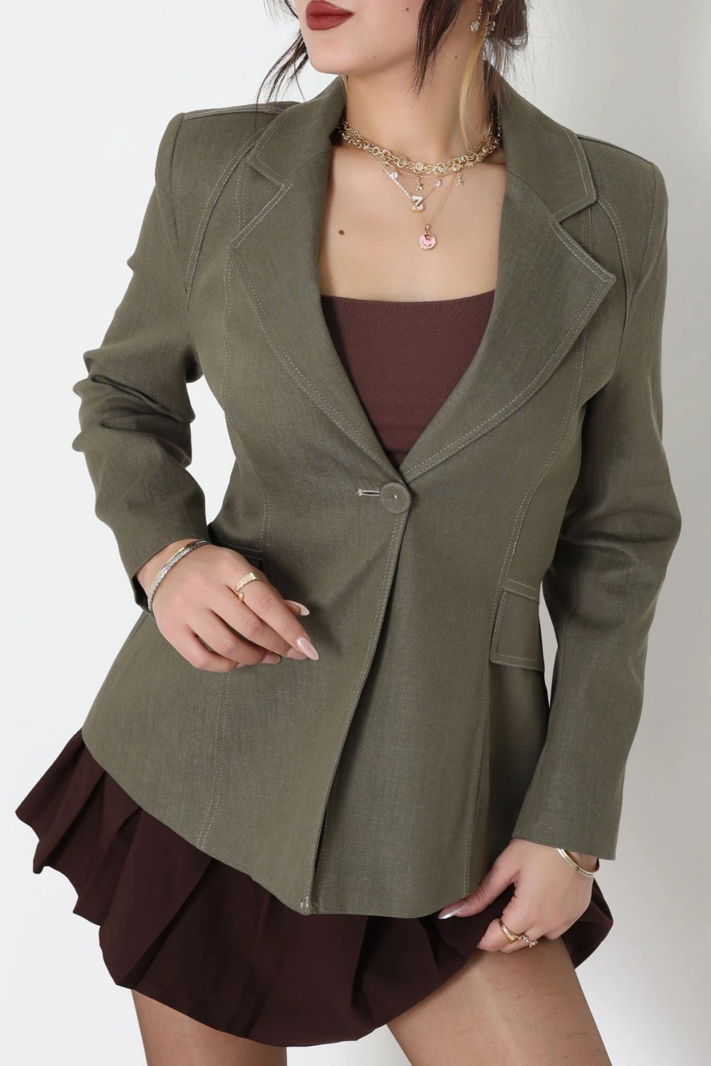 Yaka Fitilli Gabardin Ceket Taba - 8790.179.