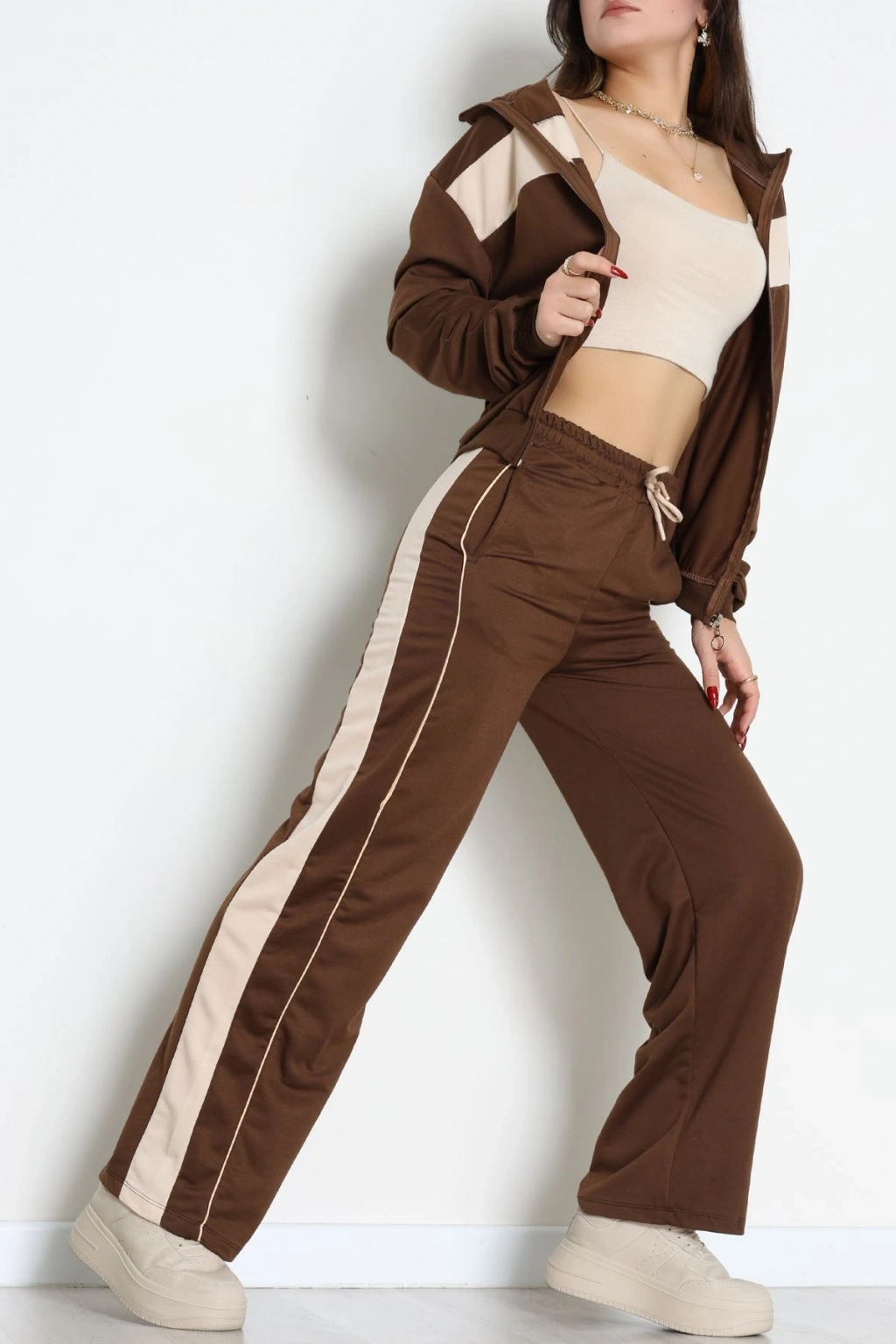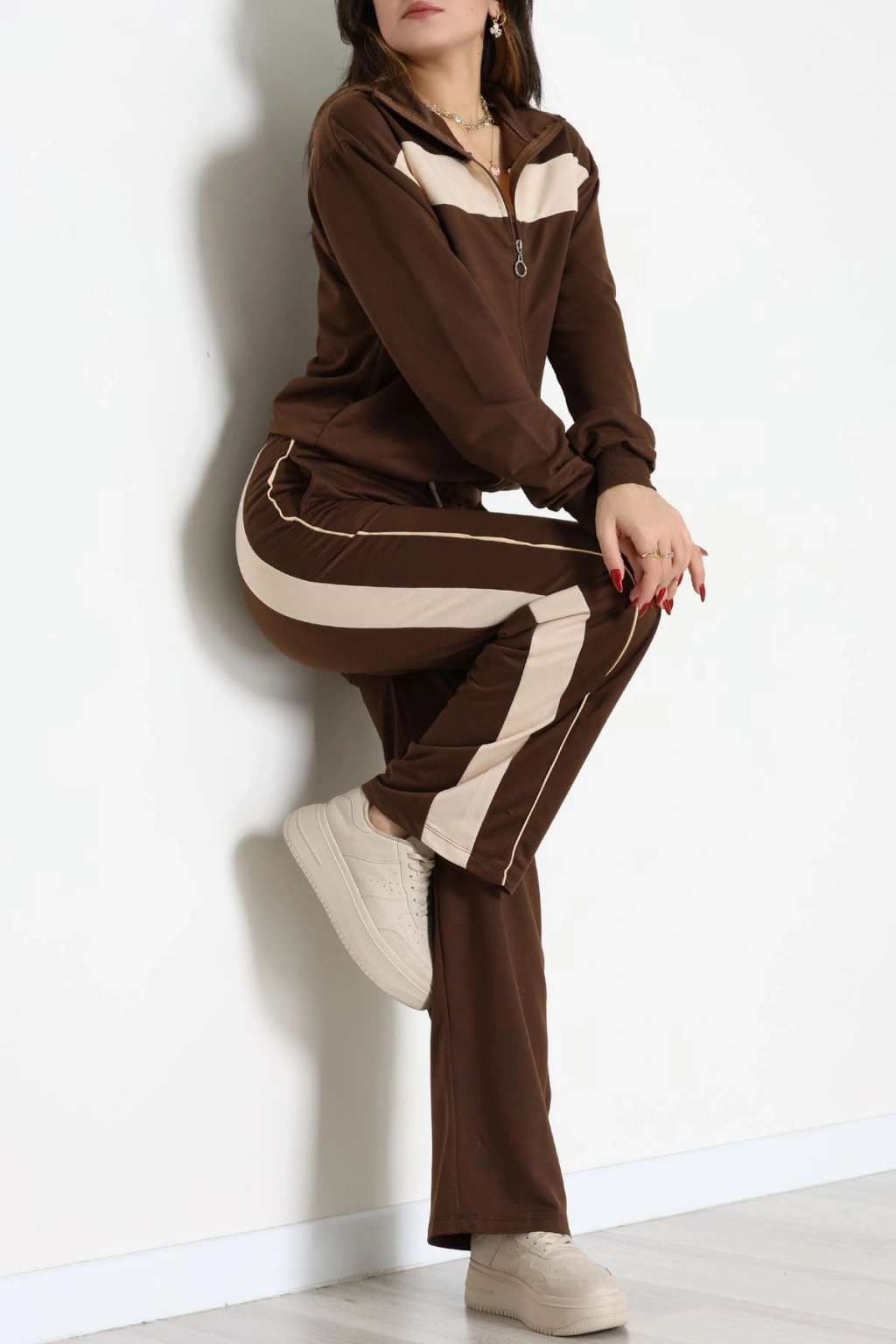 Garnili Fermuarlı 2 İplik Eşofman Takımı Kahvebej - 50790.1857.