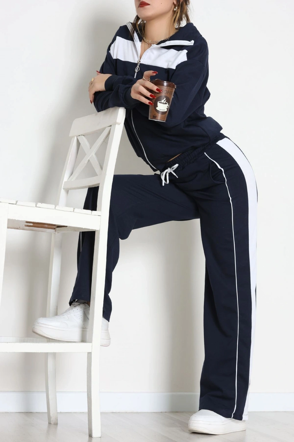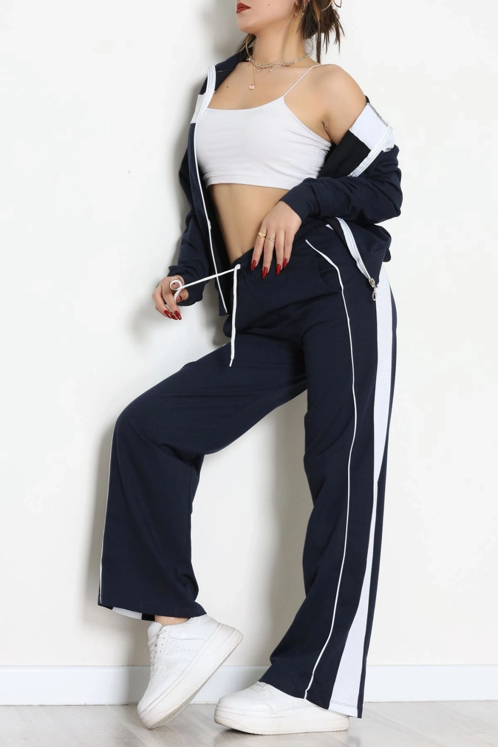 Baskılı Biyeli Eşofman Takımı Lacivertbeyaz - 20075.1857.