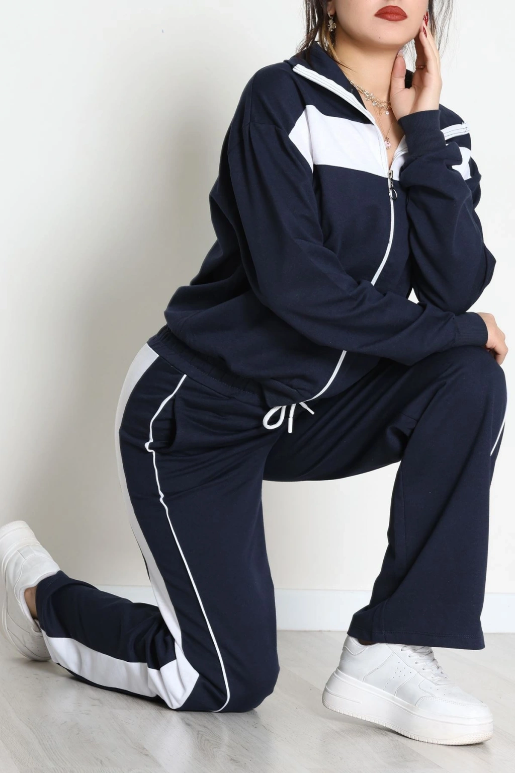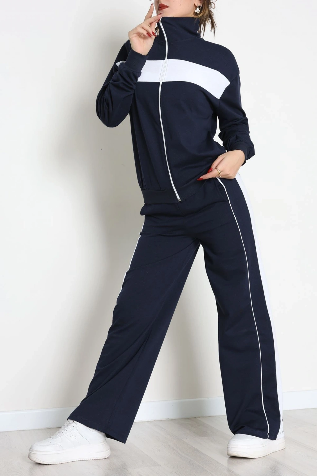 Biyeli Dik Yaka 2 İplik Eşofman Takımı Lacivert - 40030.1857.