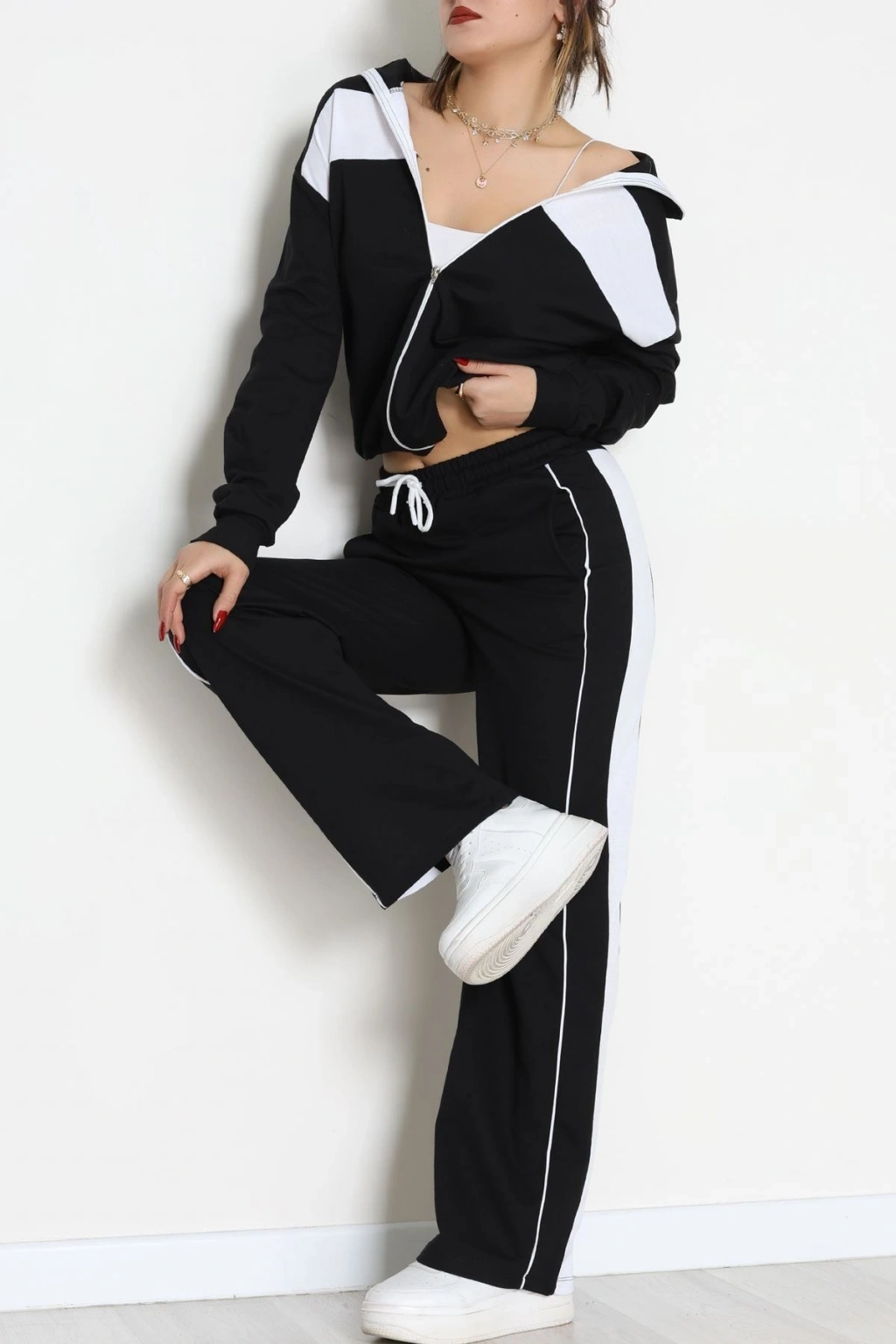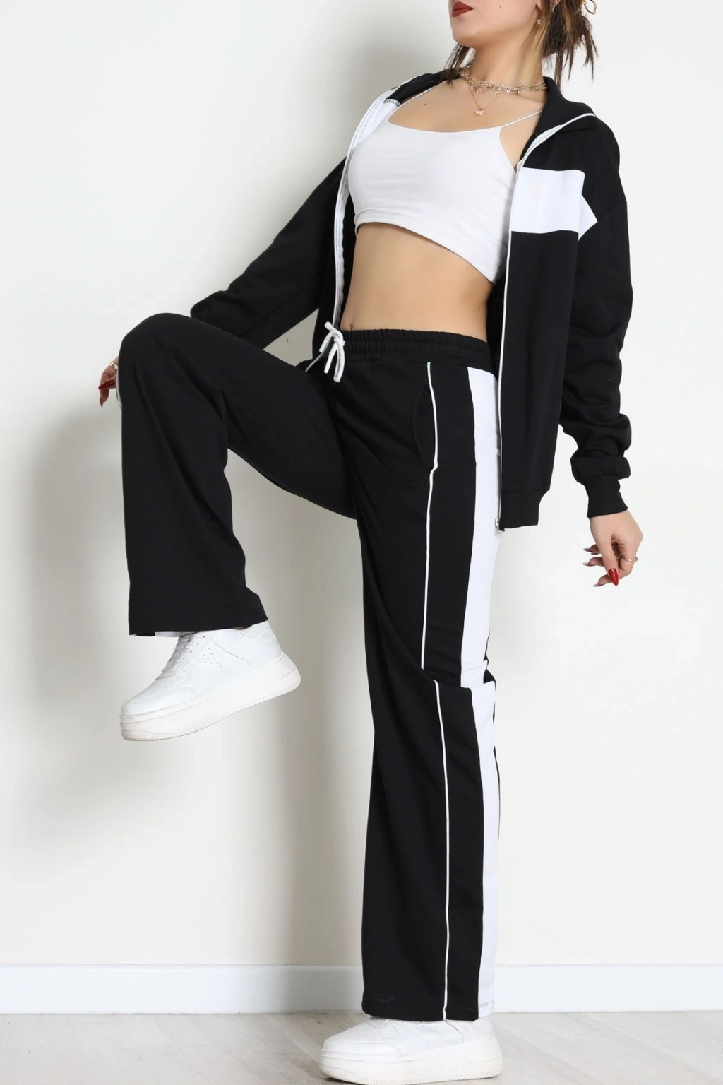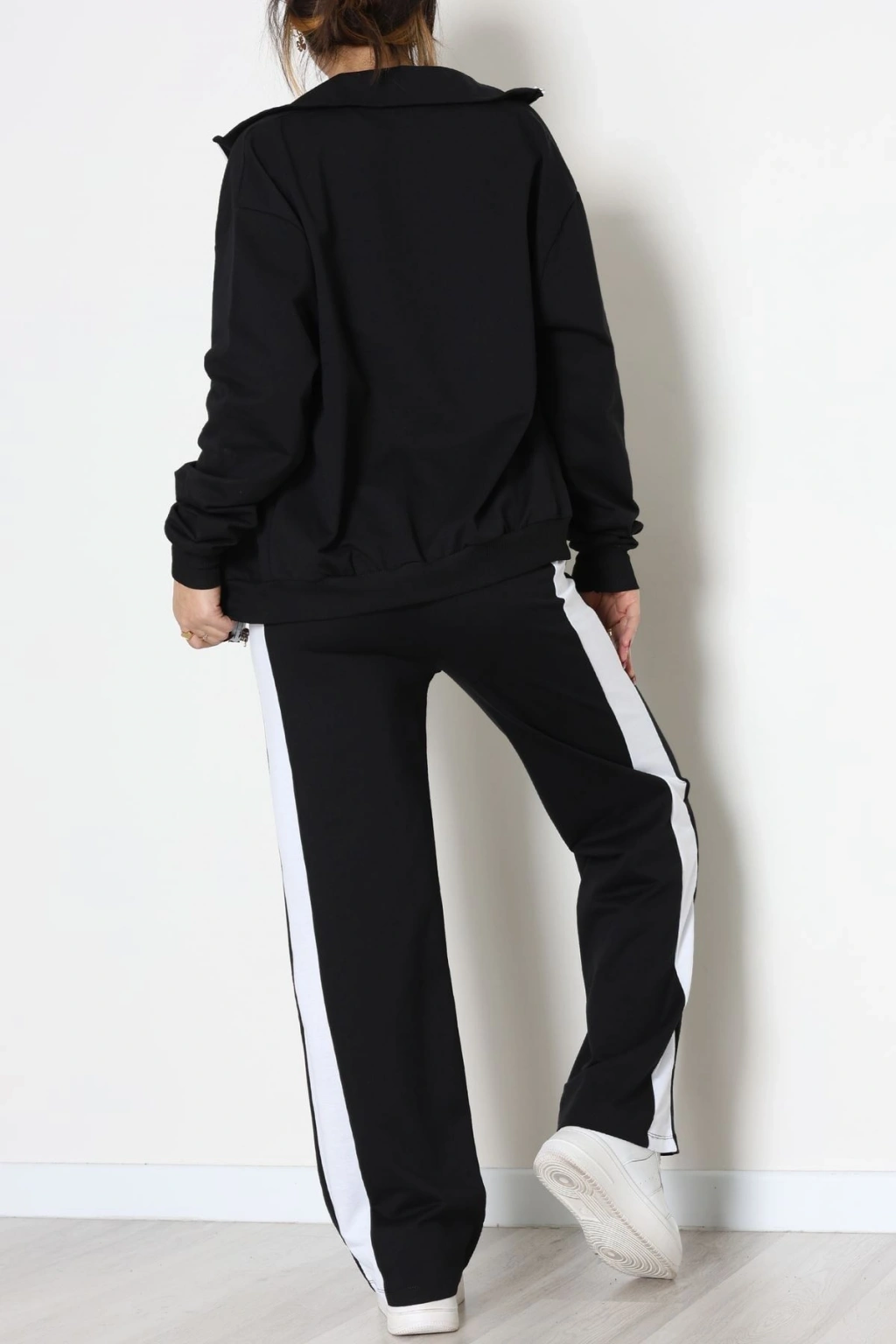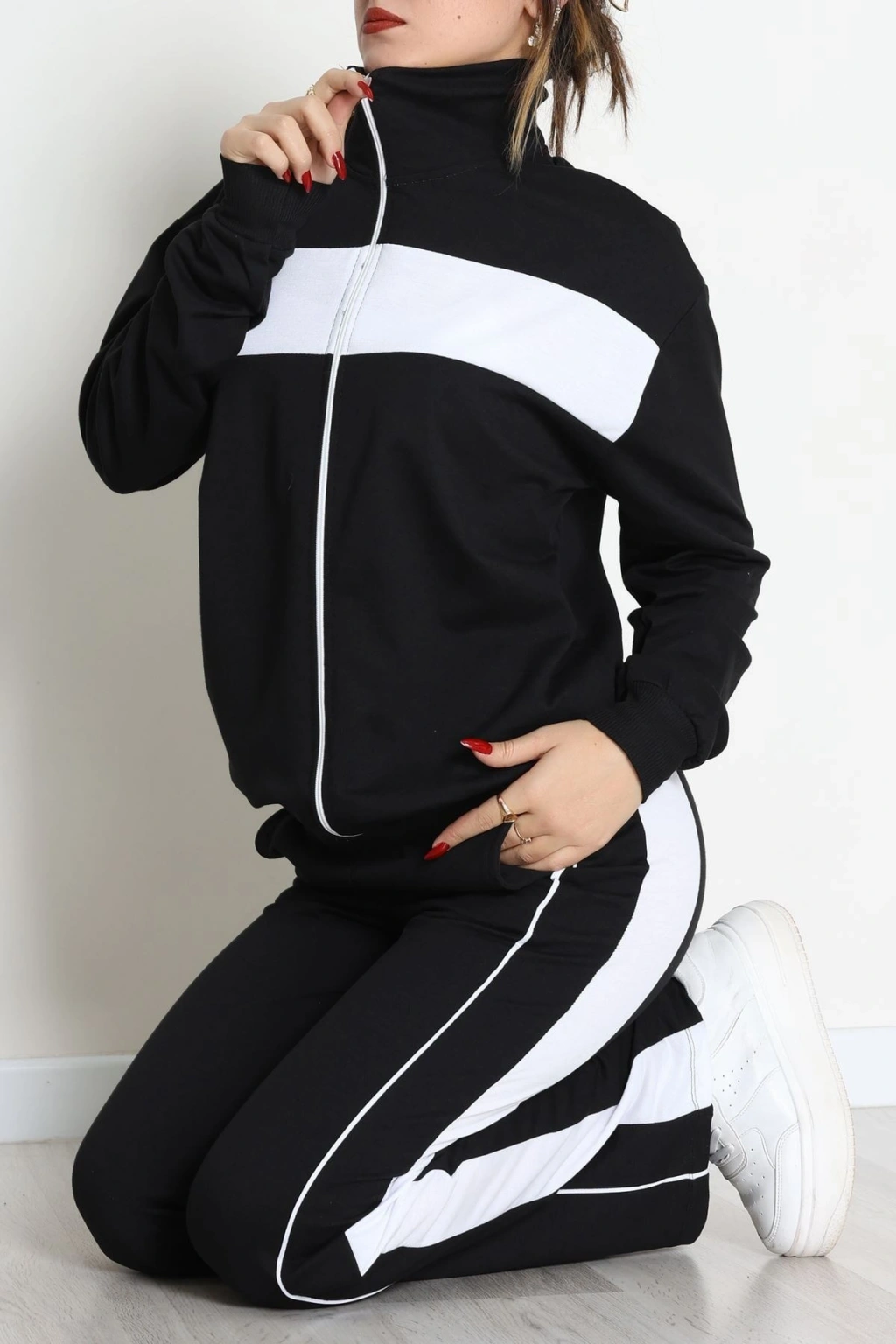 Garnili Fermuarlı 2 İplik Eşofman Takımı Siyahbeyaz - 50790.1857.