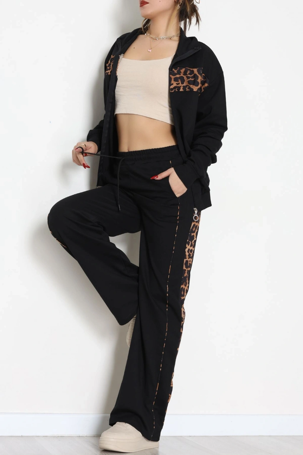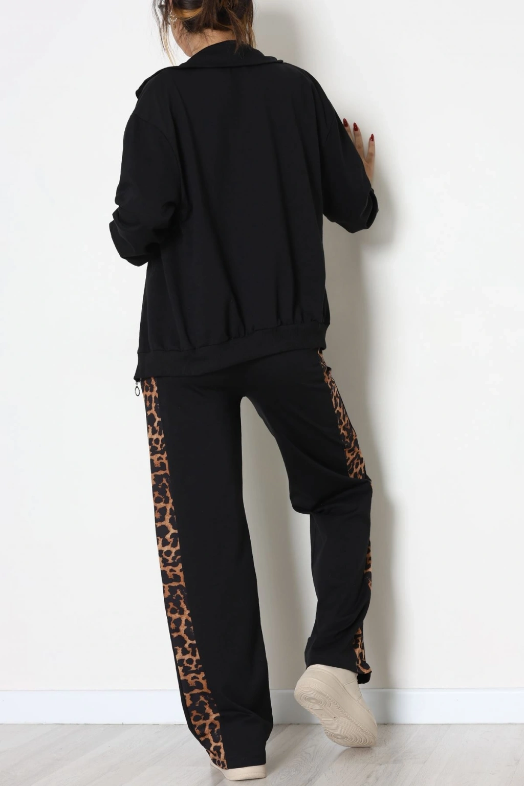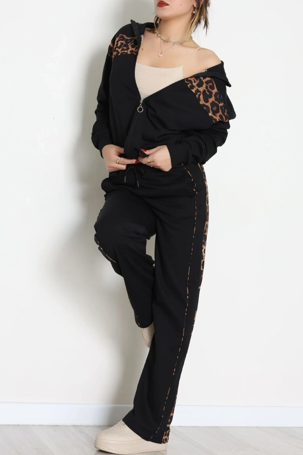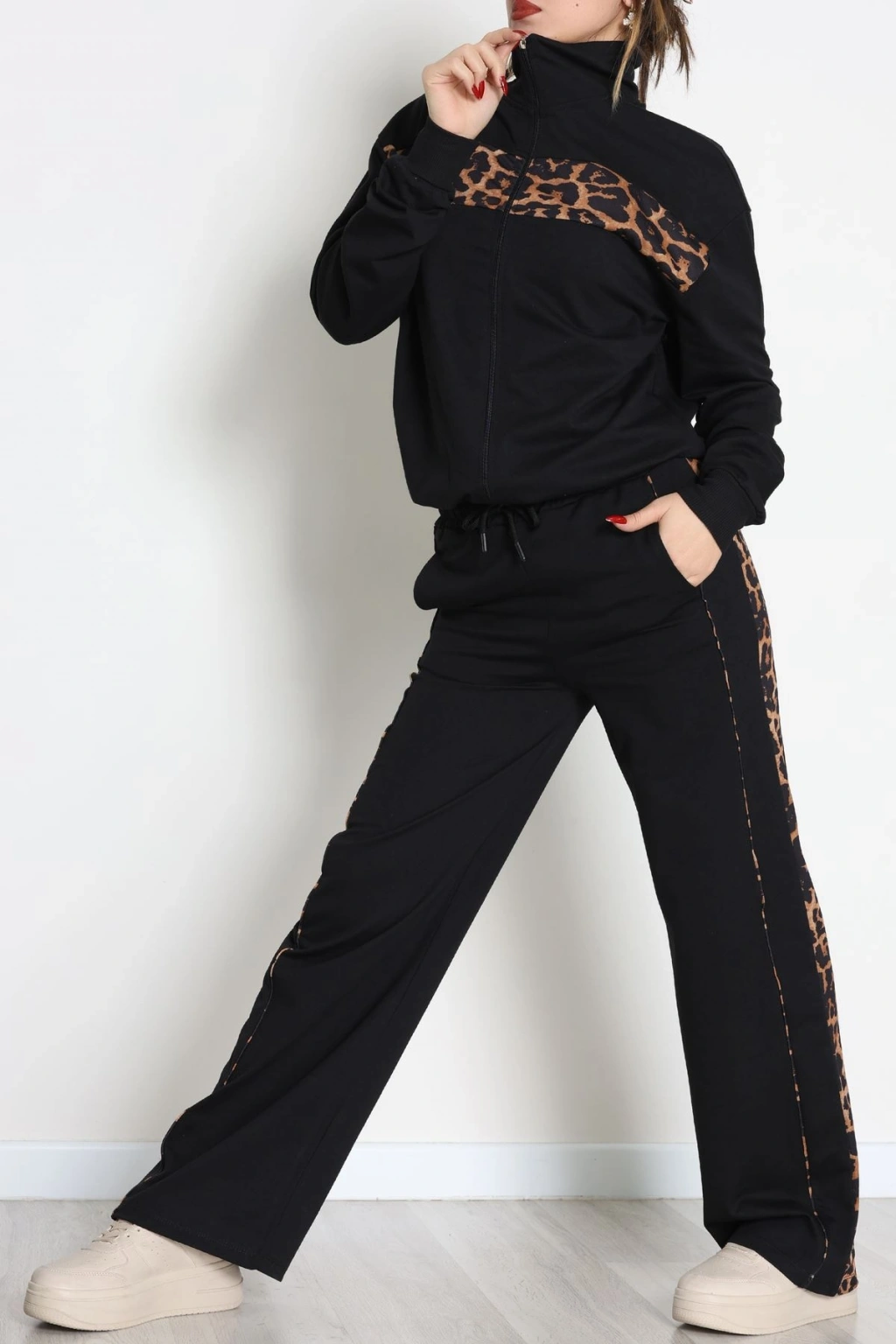 Garnili Fermuarlı 2 İplik Eşofman Takımı Siyahleopar - 50790.1857.