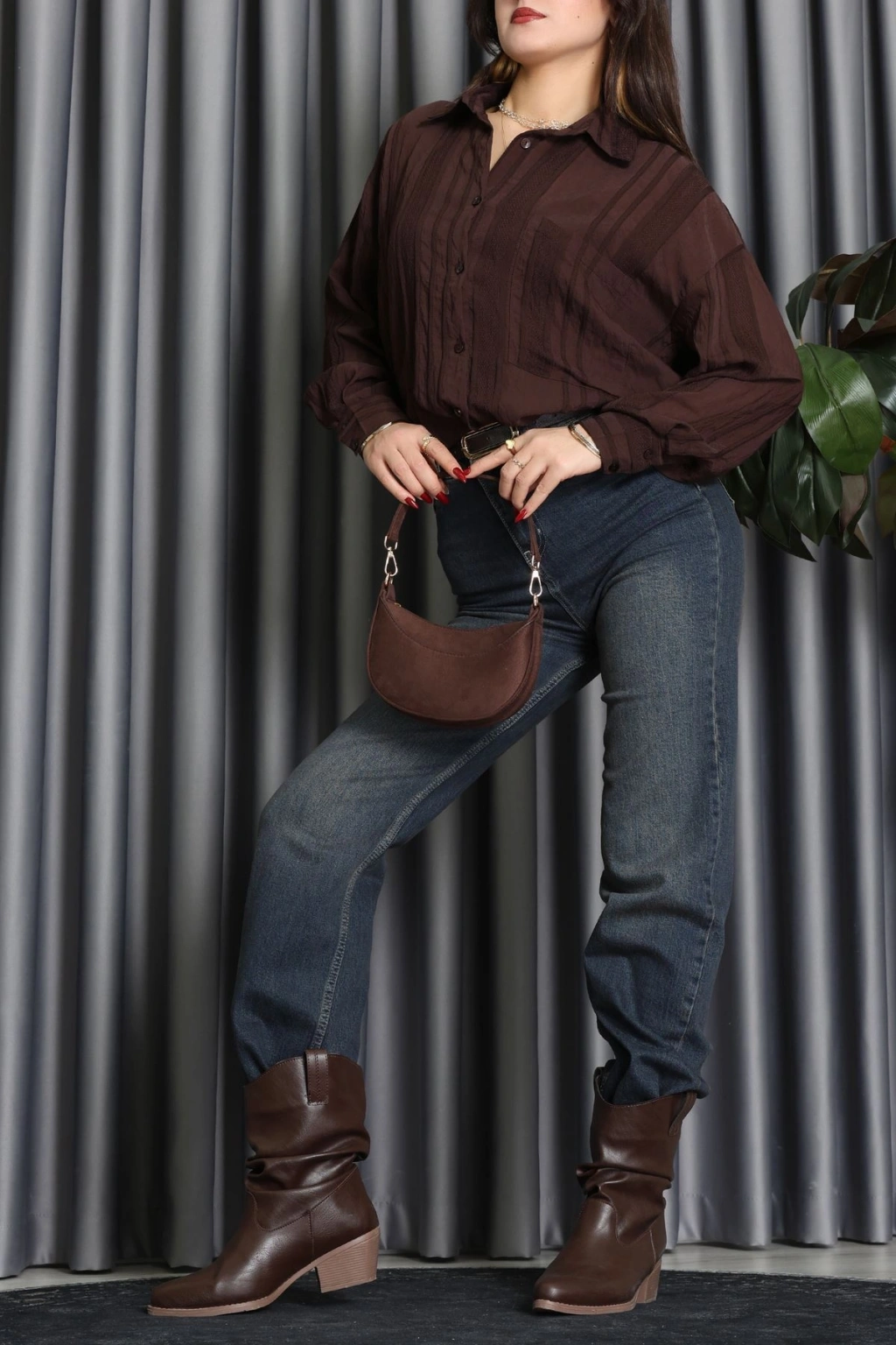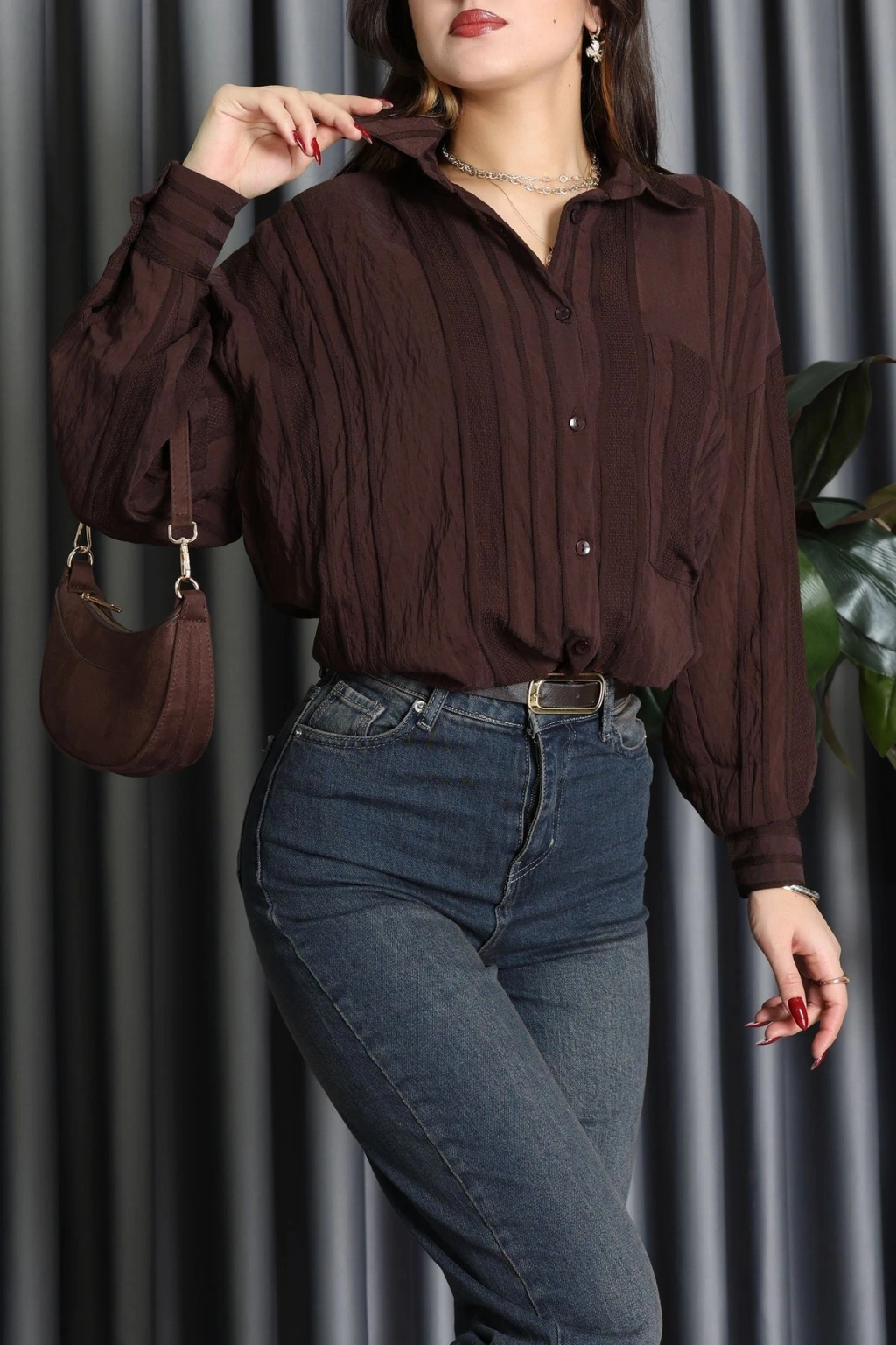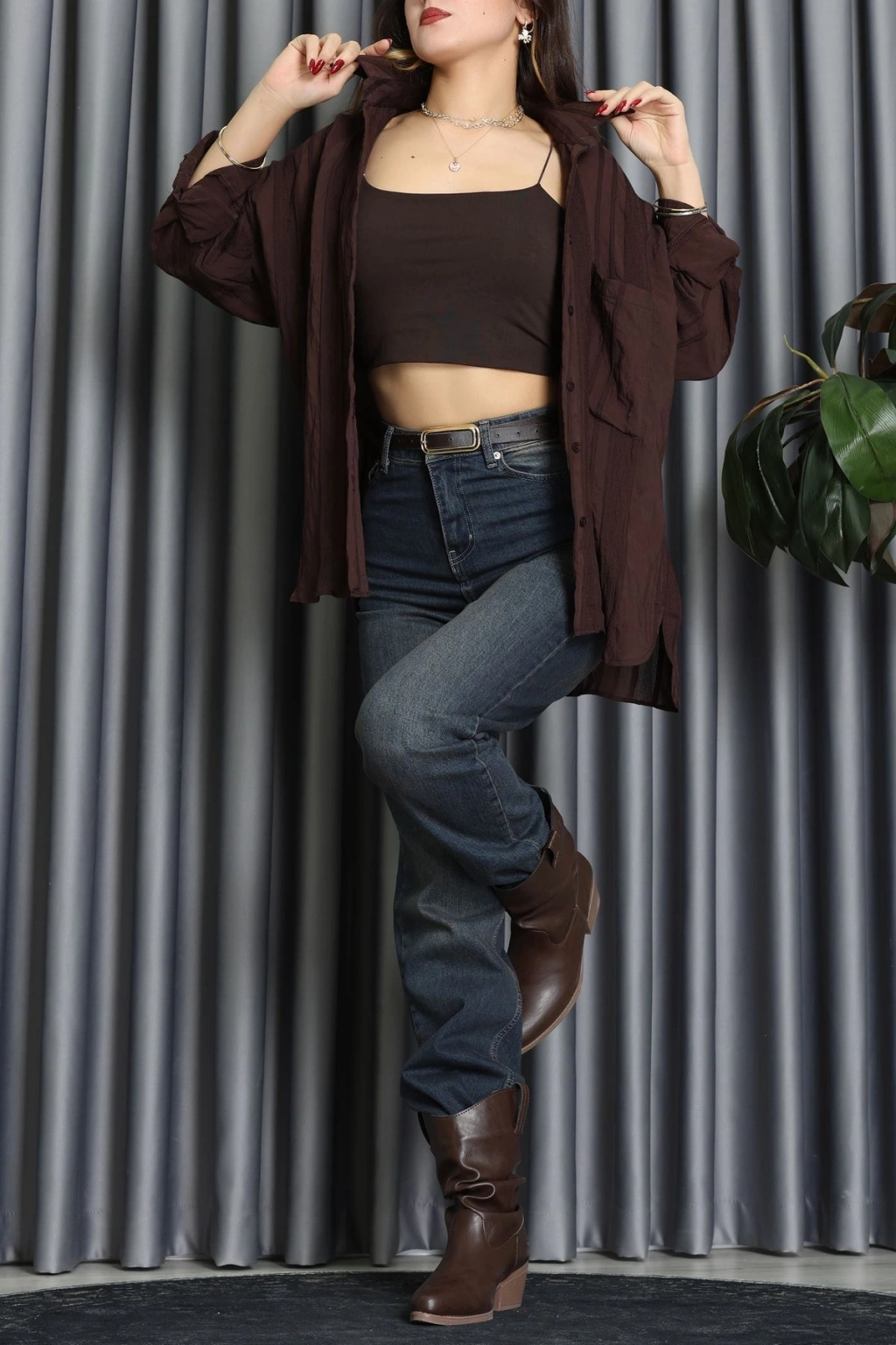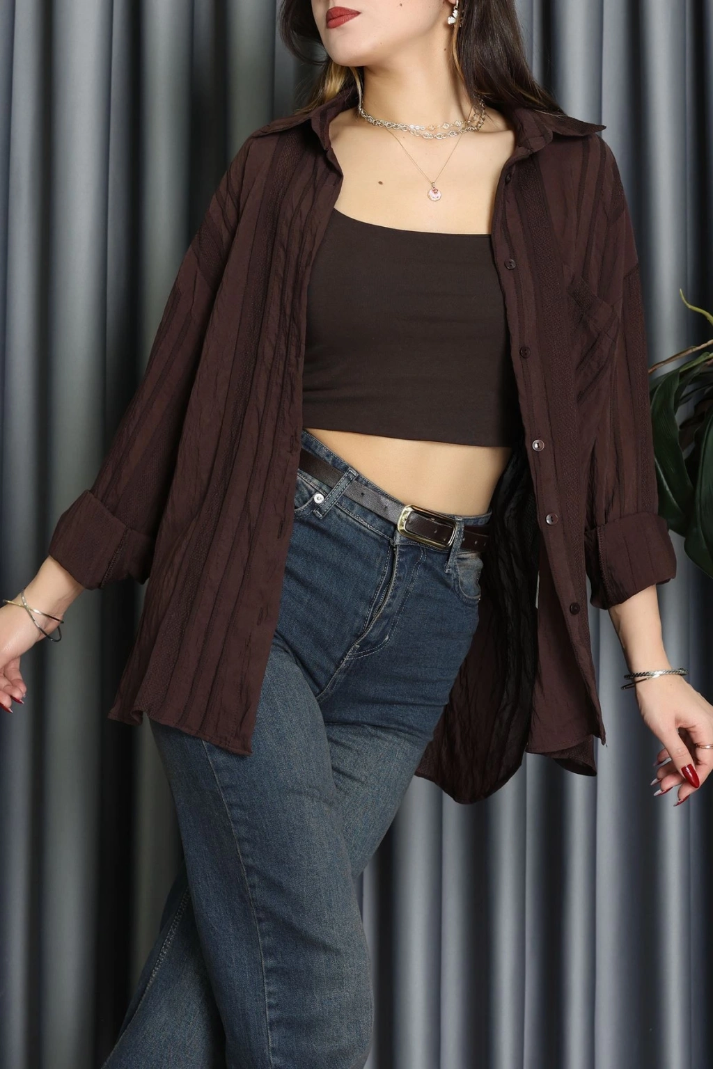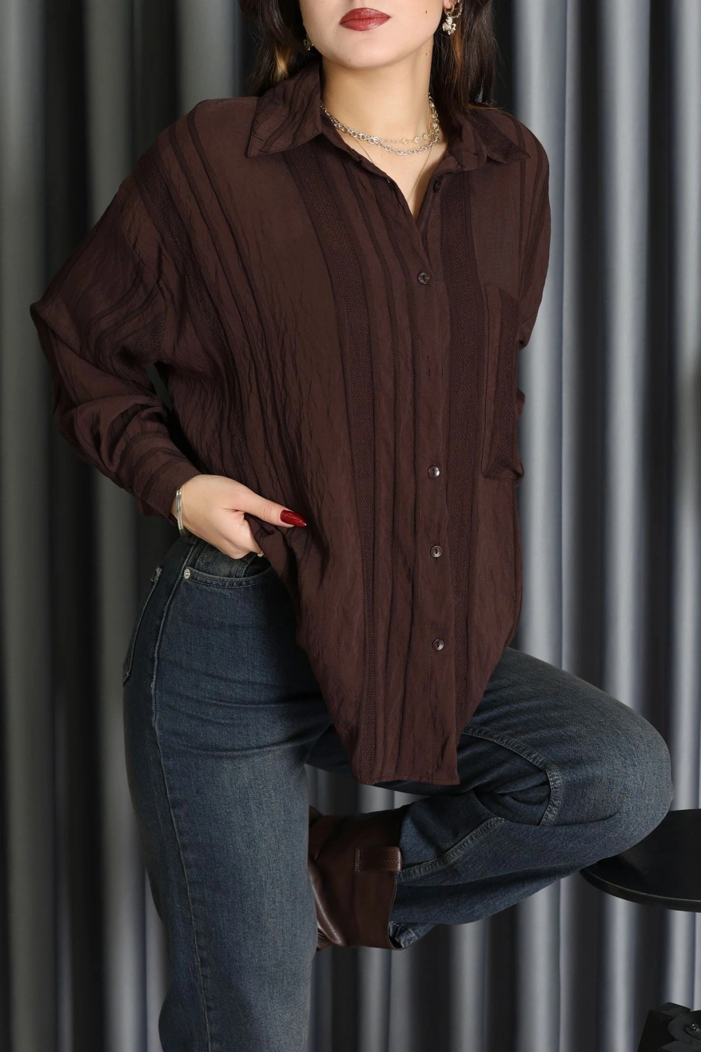 Armürlü Müslin Oversize Gömlek Kahve - 70994.1934.