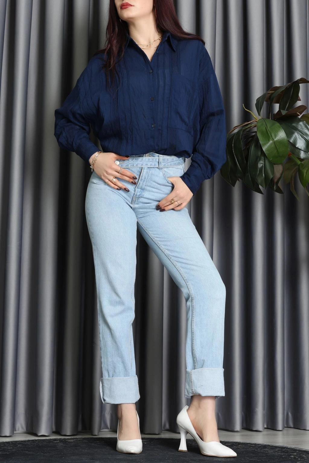 Armürlü Müslin Oversize Gömlek Kahve - 70994.1934.