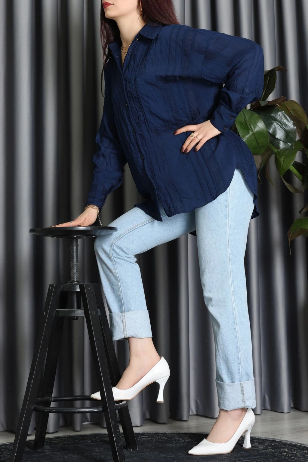 Armürlü Müslin Oversize Gömlek Haki - 70994.1934.