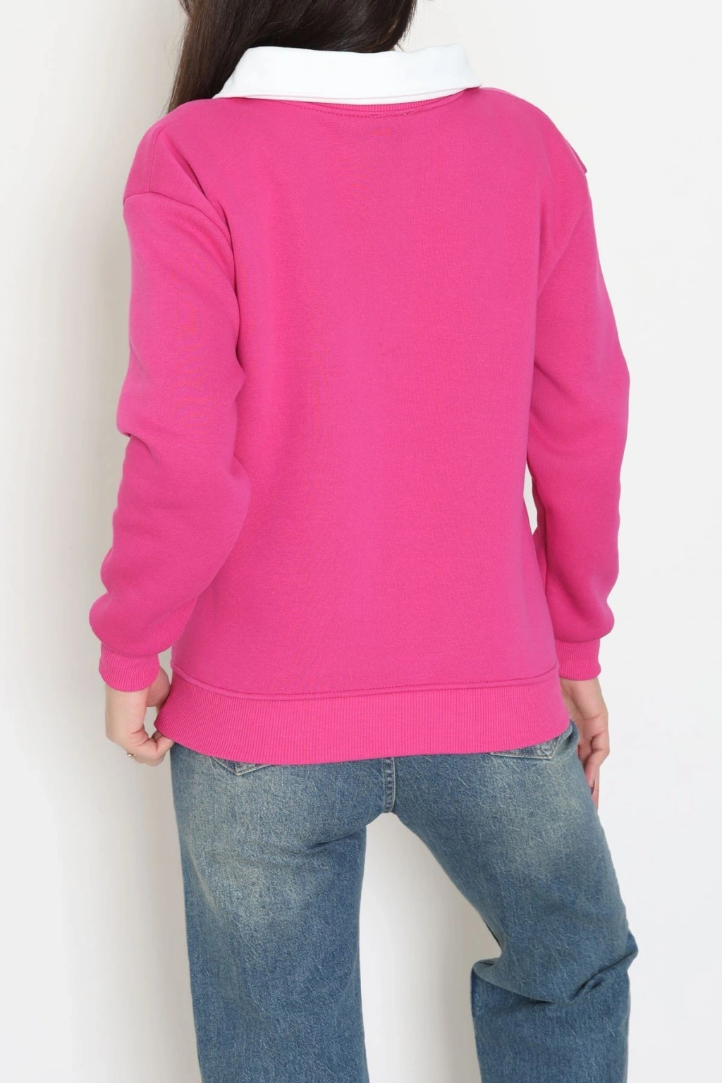 Gömlek Yaka 3 İplik Sweat Fuşya - 21985.200.