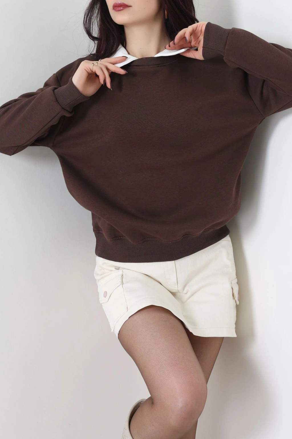 Gömlek Yaka 3 İplik Sweat Kahve - 21985.200.