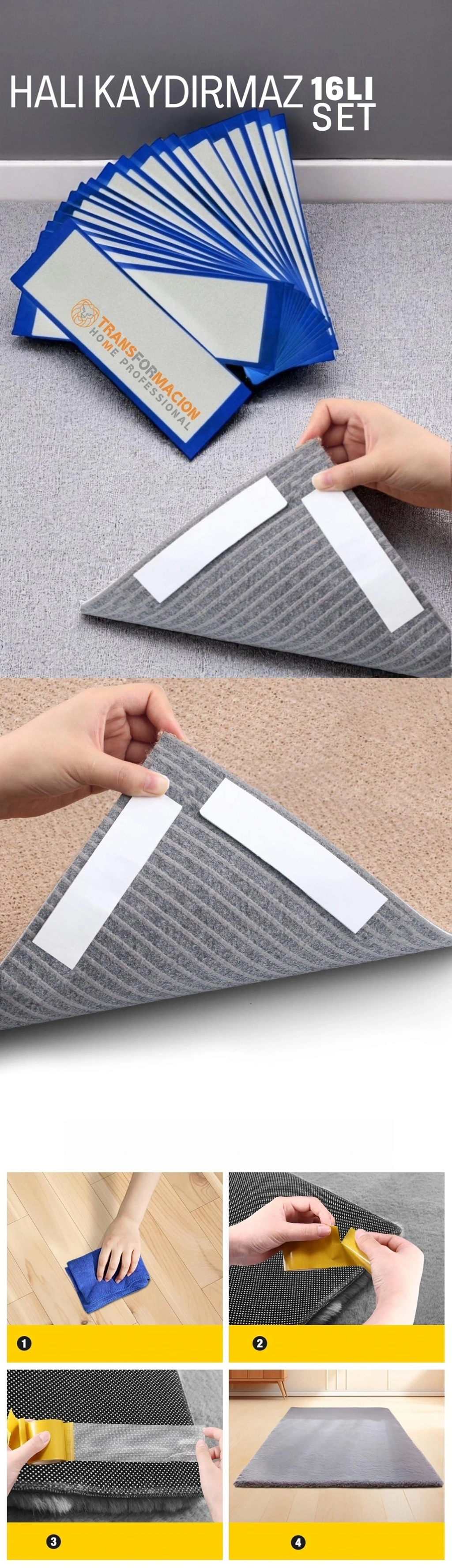 GENİŞ KULLANIM ALANI : Halı, kilim, paspas, yolluk, paspas ve araba paspaslarının yanı sıra sert ahşap, ahşap, fayans, plastik, laminat, beton veya diğer halılara halı sabitlemek için kullanılabilir.