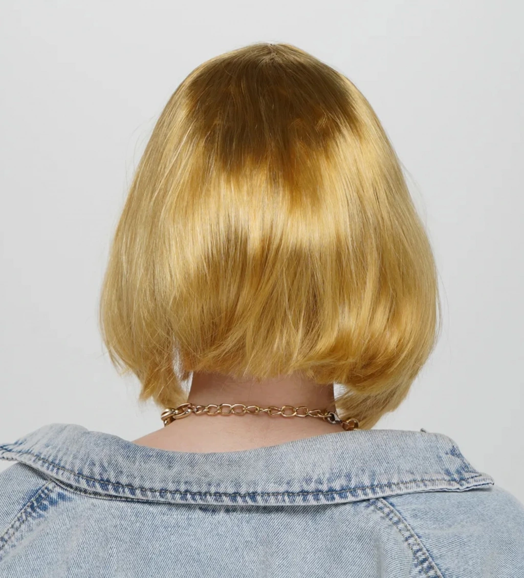 Bu peruk, canlı ve cesur altın rengi ile dikkat çekici bir görünüme sahiptir. Düz kesimi ve kısa oluşu ile modern ve şık bir tarz sunar.