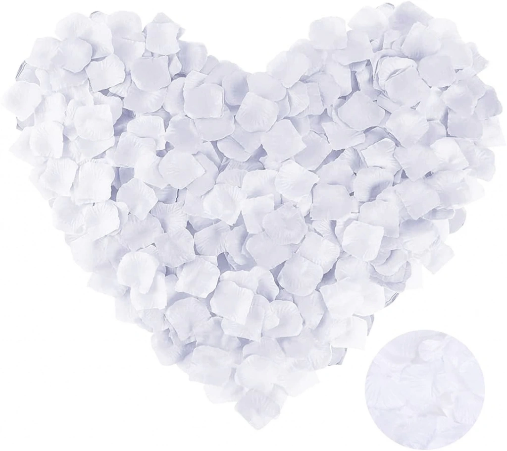 Beyaz Gül Yaprağı Şekilli Konfeti ile etkinliklerinizi unutulmaz kılın, fotoğraflarınıza romantik ve zarif bir hava katın.