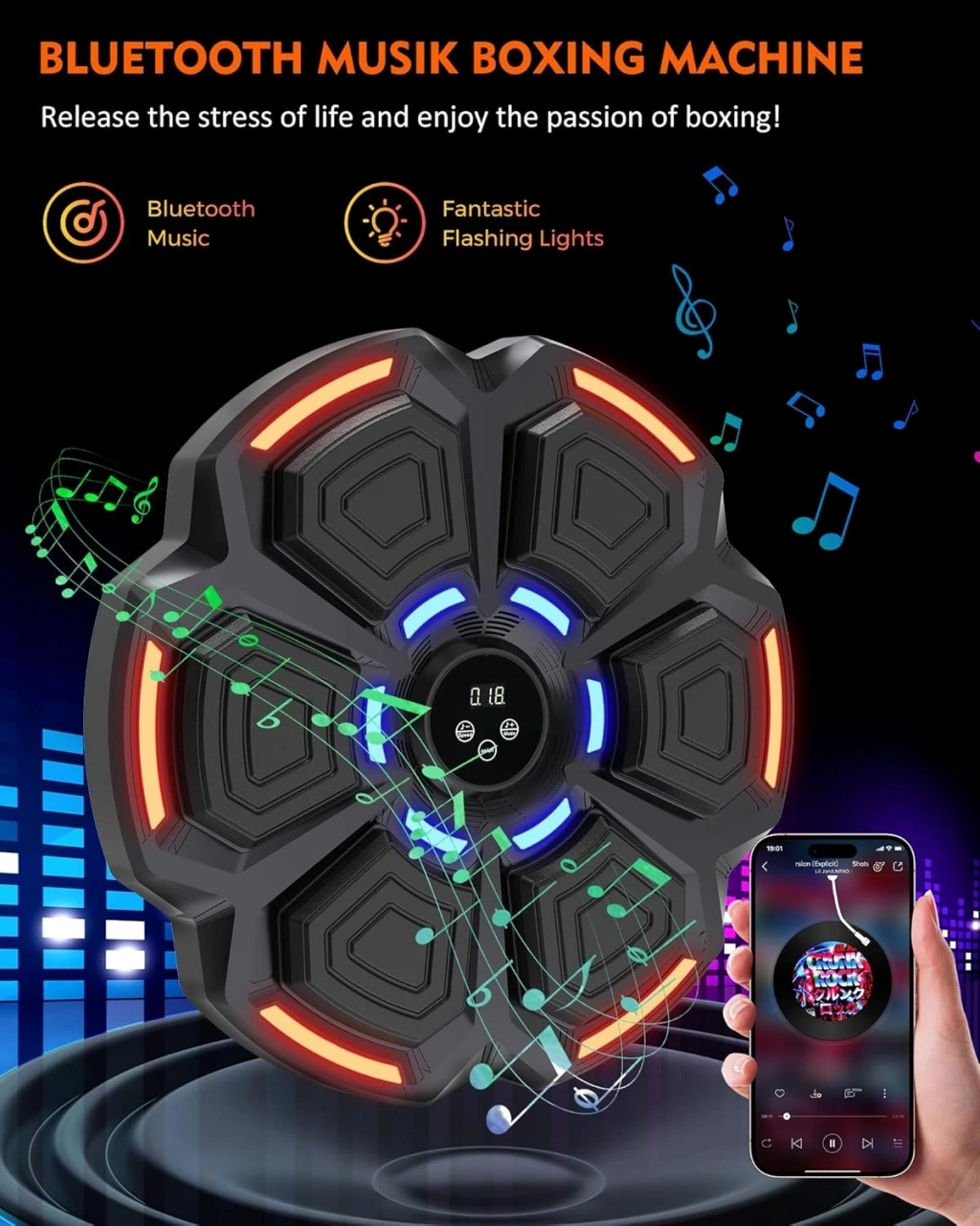 1. Müzik Motivasyonu: Akıllı Müzikli Boks Makinesi, müziğin gücünü boksun gücüyle kusursuz bir şekilde birleştirerek antrenmanları daha keyifli ve motive       edici hale getiren devrim niteliğinde bir fitness cihazıdır.