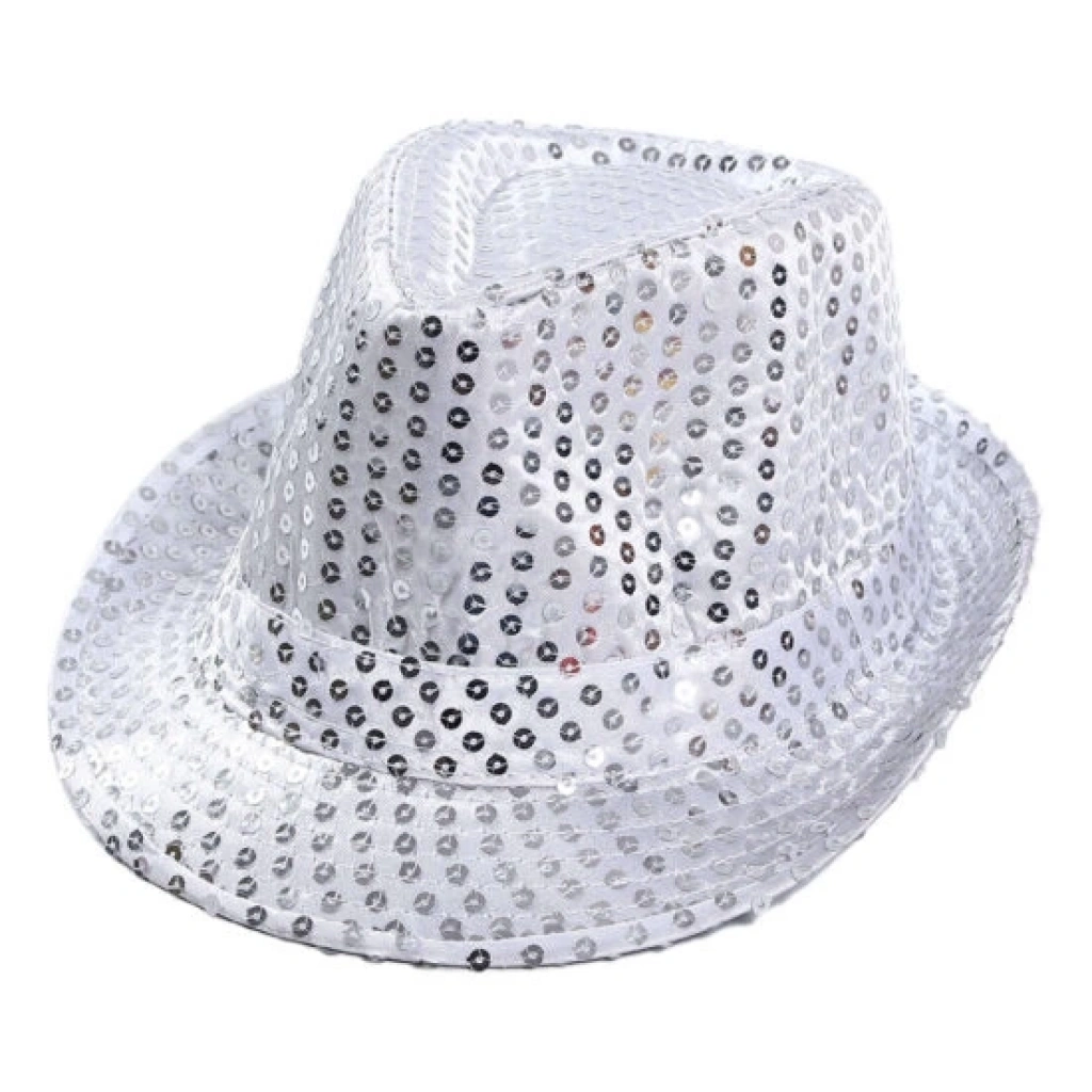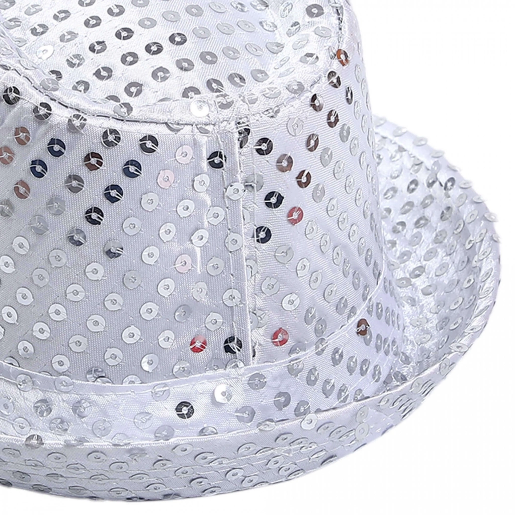 Bu şapka, ister bir gösteride sahneye çıkın ister bir kostüm partisi için giyinin, göz alıcı bir görünüm oluşturmak için mükemmeldir. Yumuşak gümüş payetlerle kaplı şapka, ışıltılı bir etki oluştururuyor.