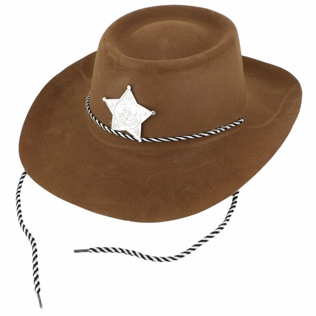 Kahve Renk Plastik Üzeri Kadife Kaplama Çocuk Kovboy Şapkası, 4-10 yaş arası çocuklara kovboyculuk oyunlarının heyecanını yaşatacak şık ve eğlenceli bir aksesuardır. Kadife kaplaması ve plastik alt yapısı ile hem dayanıklı hem de göz alıcı bir görünüme sahiptir.