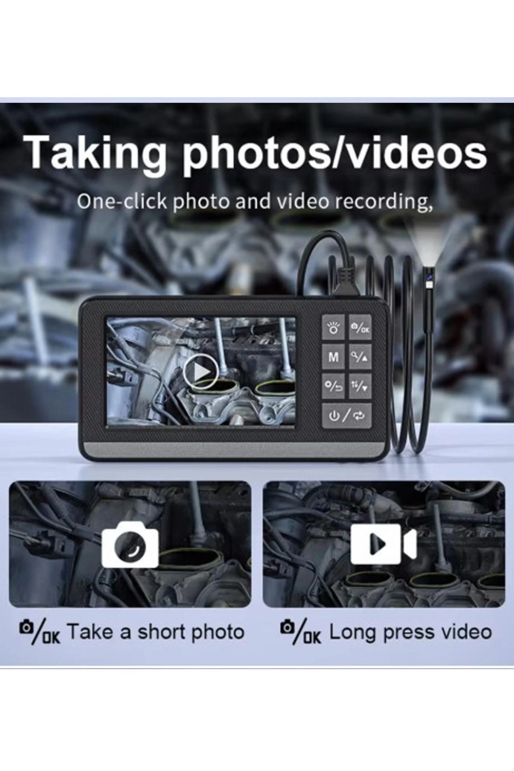 Yarı sert kablo yeterince uzun ve tutması kolay, ulaşılması zor alana girin. IP67 su geçirmez kamera, endoskop nemli ortamda çalışabilir, hatta su altına daldırabilirsiniz.