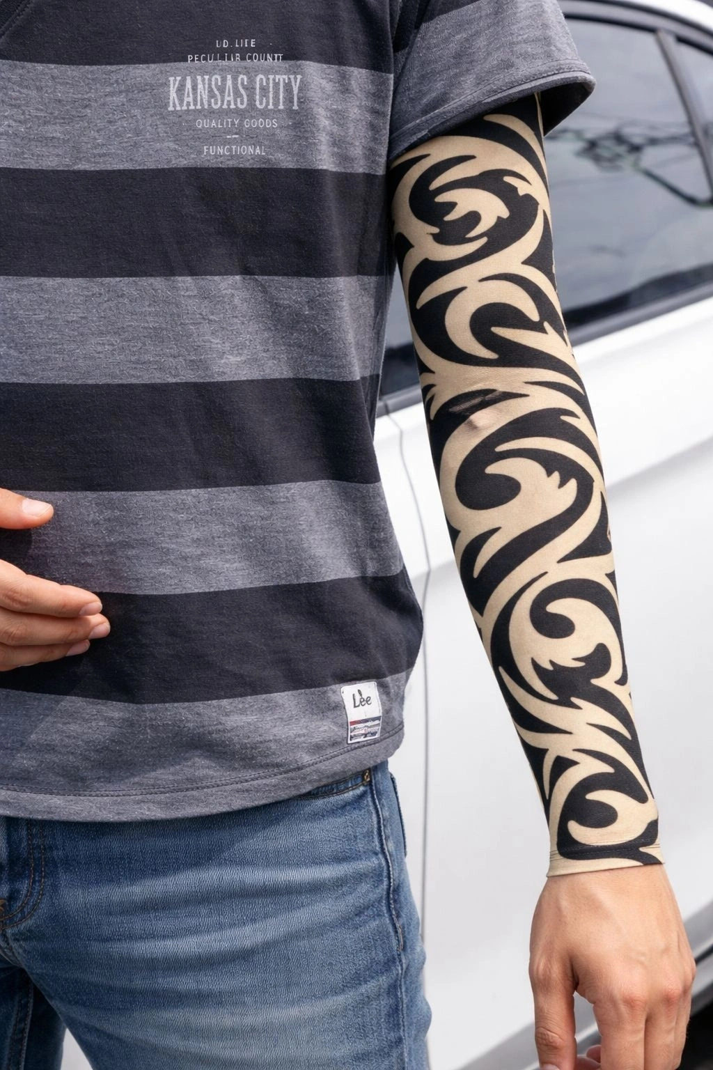 Dövme yaptırmadan tarzınızı öne çıkarın Model 14, kol ve bacak için tasarlanmış, yüksek kaliteli likralı kumaştan üretilmiş 3D baskılı geçici dövme çorap setidir. Set, 2 çoraptan oluşur, sağ ve sol kol veya bacak için uygundur.
