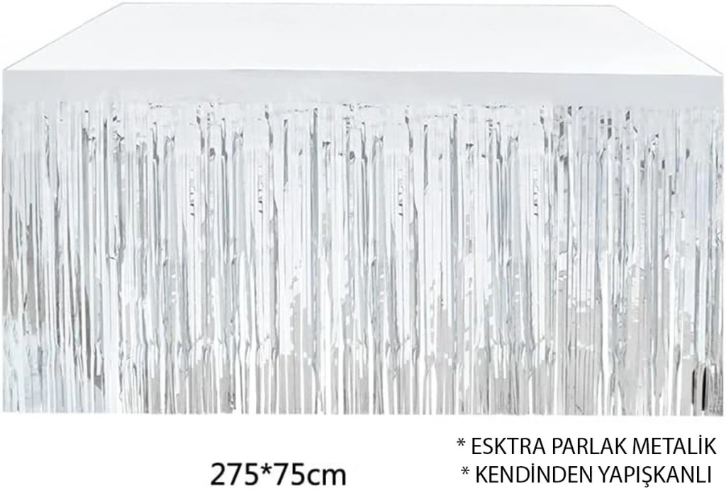 Gümüş Metalize Masa Eteği 275x75 cm &ndash Kendinden Yapışkanlı
