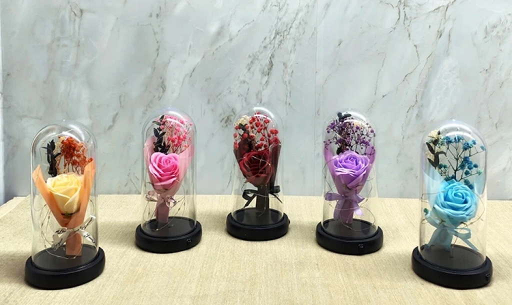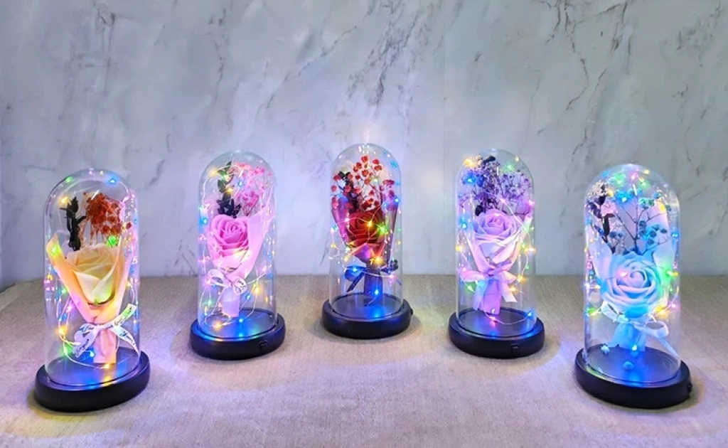 Işıklı Müzkli Dekoratif Cam Fanus İçinde Gül Alk5005 Ürün Ölçüleri 21*11 Cm