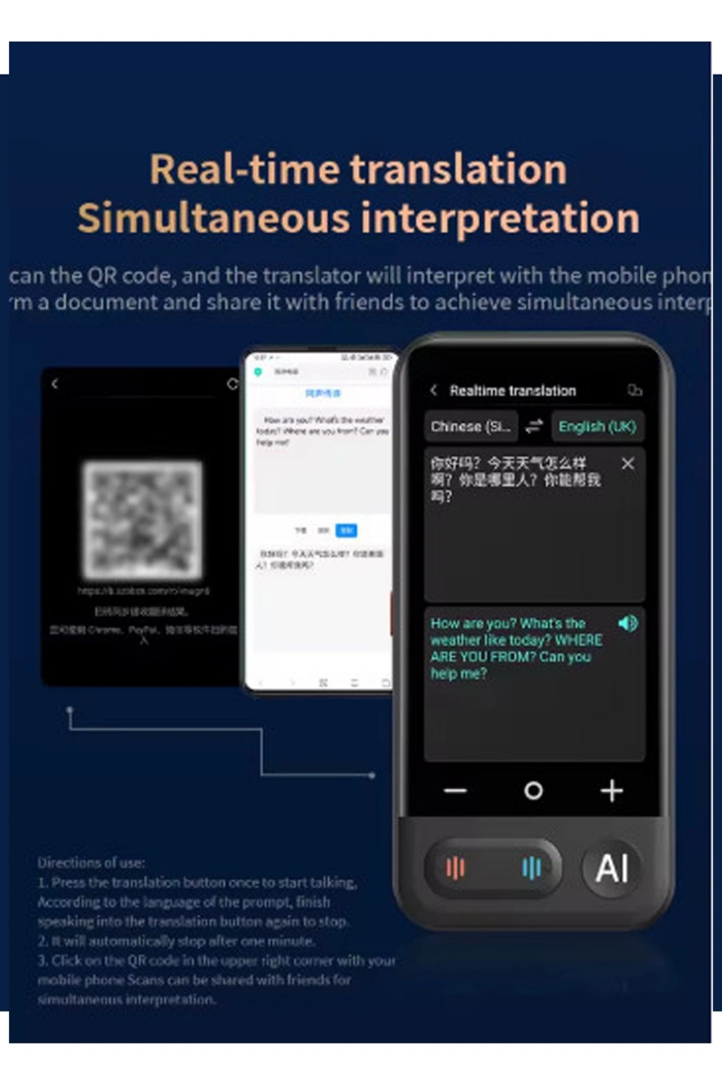Z16 Ai Çevirmen | Yapay Zeka Akıllı Ses Çevirisi: Son teknoloji yapay zeka ile güçlendirilen Z16 çevirmen, gerçek zamanlı, doğal sesli çevirileri hassasiyetle sunar.