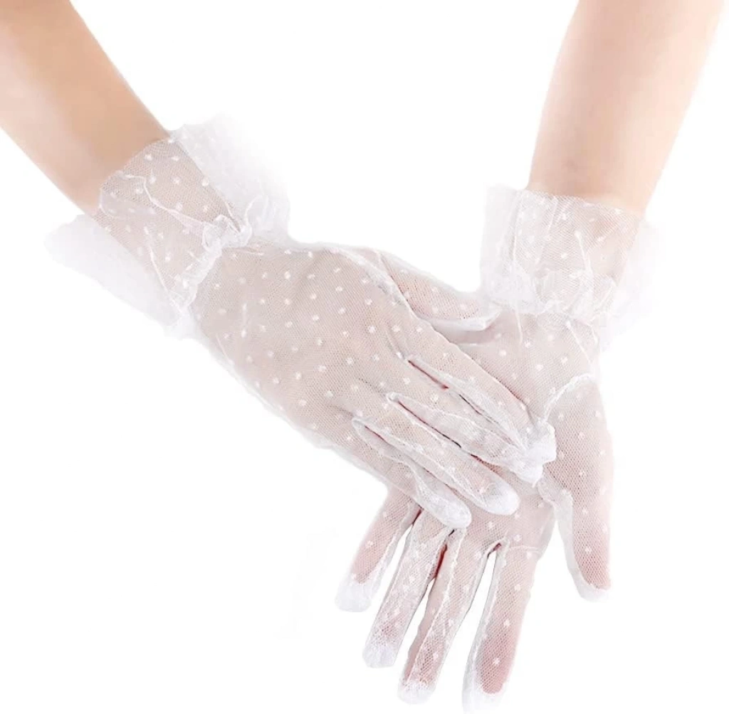 Kısa Boy Güpürlü Beyaz Puantiyeli Tül Eldiven Beyaz Renk