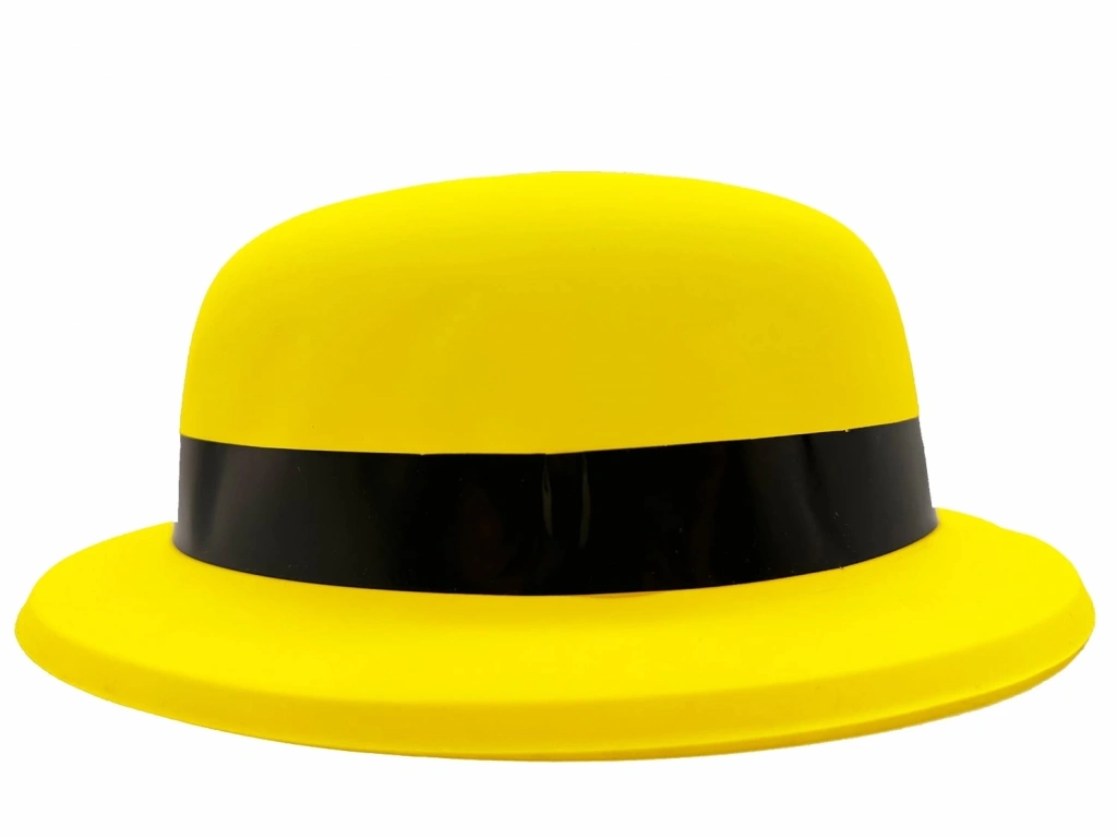 Neon sarı rengi ile göz kamaştıran plastik melon şapkamız, partilerin vazgeçilmez aksesuarı olacak Hafif ve rahat yapısıyla tüm gece boyunca dans edebilir, eğlenebilirsin.