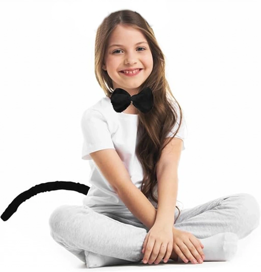Peluş Siyah Renk Kuyruk Ve Papyon Yetişkin Çocuk Uyumlu