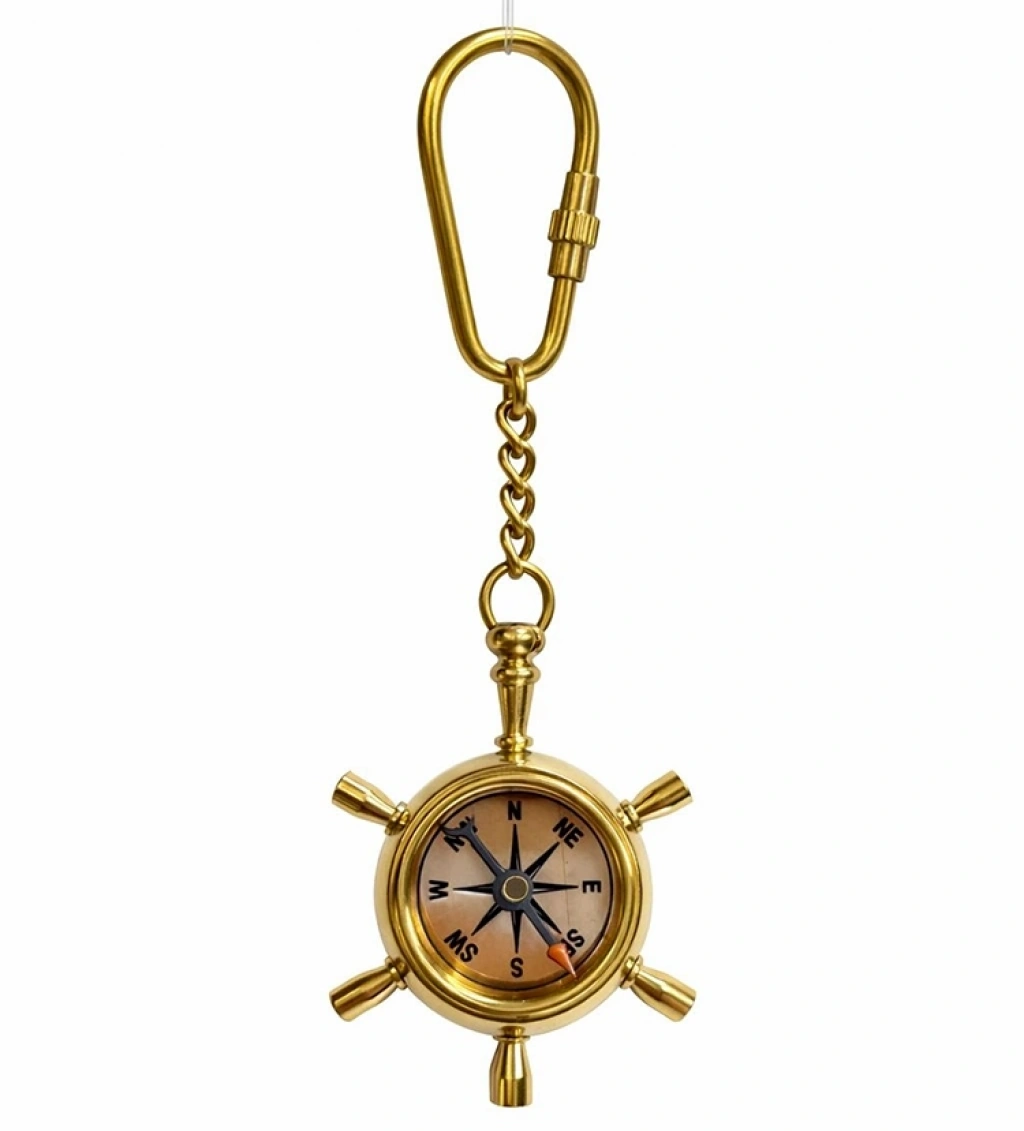Pirinç Dümenli Pusula Anahtarlık 16123a