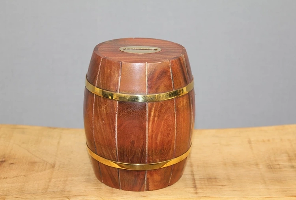 Pirinç Ahşap Fıçı Kumbara 12.5 Cm Wb535