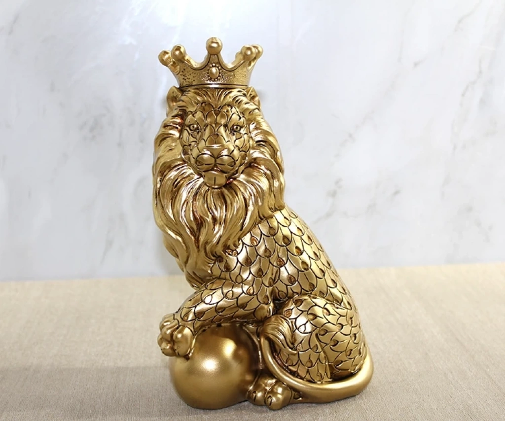 Polyester Dekoratif Taçlı Aslan Figürü Alk2574