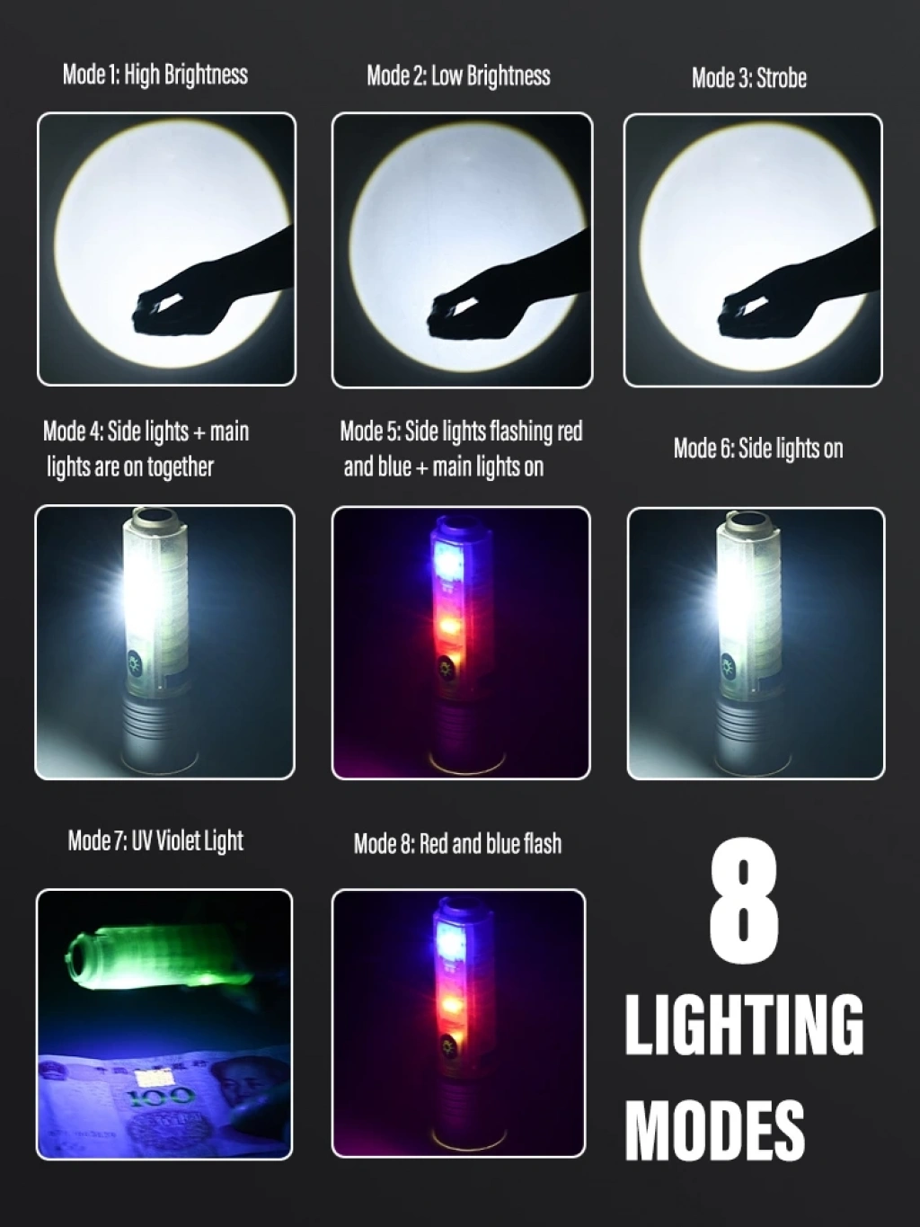 Profesyonel Tg Led Güçlü 8 Modlu Type-c 1000 Lümen Polis Çakarlı Şarjlı El Feneri