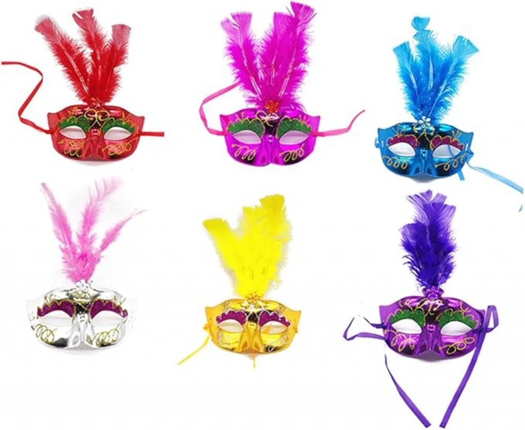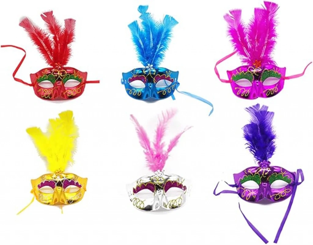 Renkli tüylü Venedik parti maskeleri ile partilerinize gizemli ve şık bir dokunuş katın. Misafirleriniz bu eşsiz maskelerle kendilerini özel hissedecek ve partiniz uzun süre hafızalardan silinmeyecek.