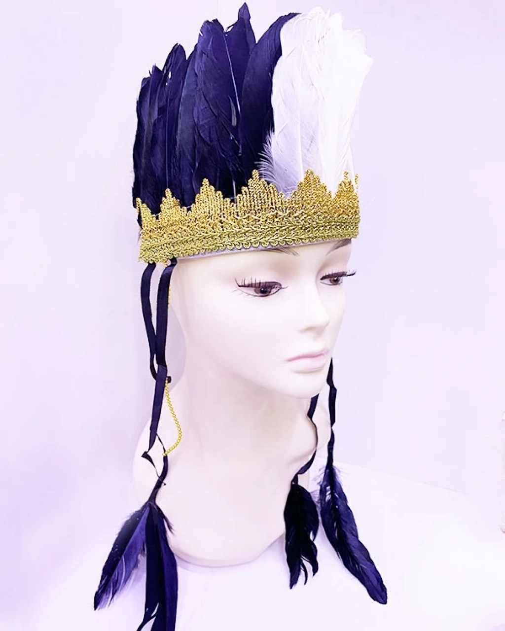 Siyah Beyaz Renk Tüylü Kızılderili Başlığı | Taraftar Başlığı
